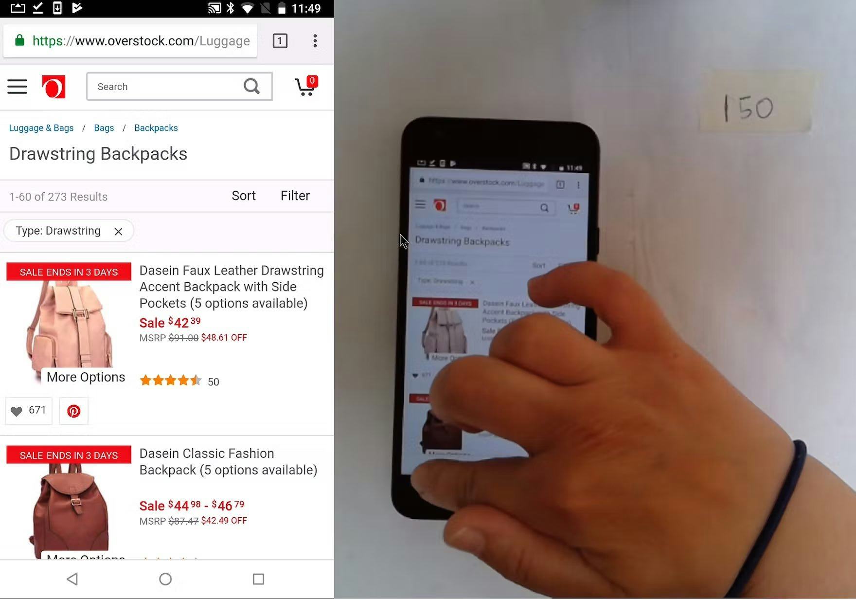 Users can’t view separate tabs at the same time — no participant tried opening multiple tabs to compare items during testing on mobile — so comparing products in different categories will be very difficult.