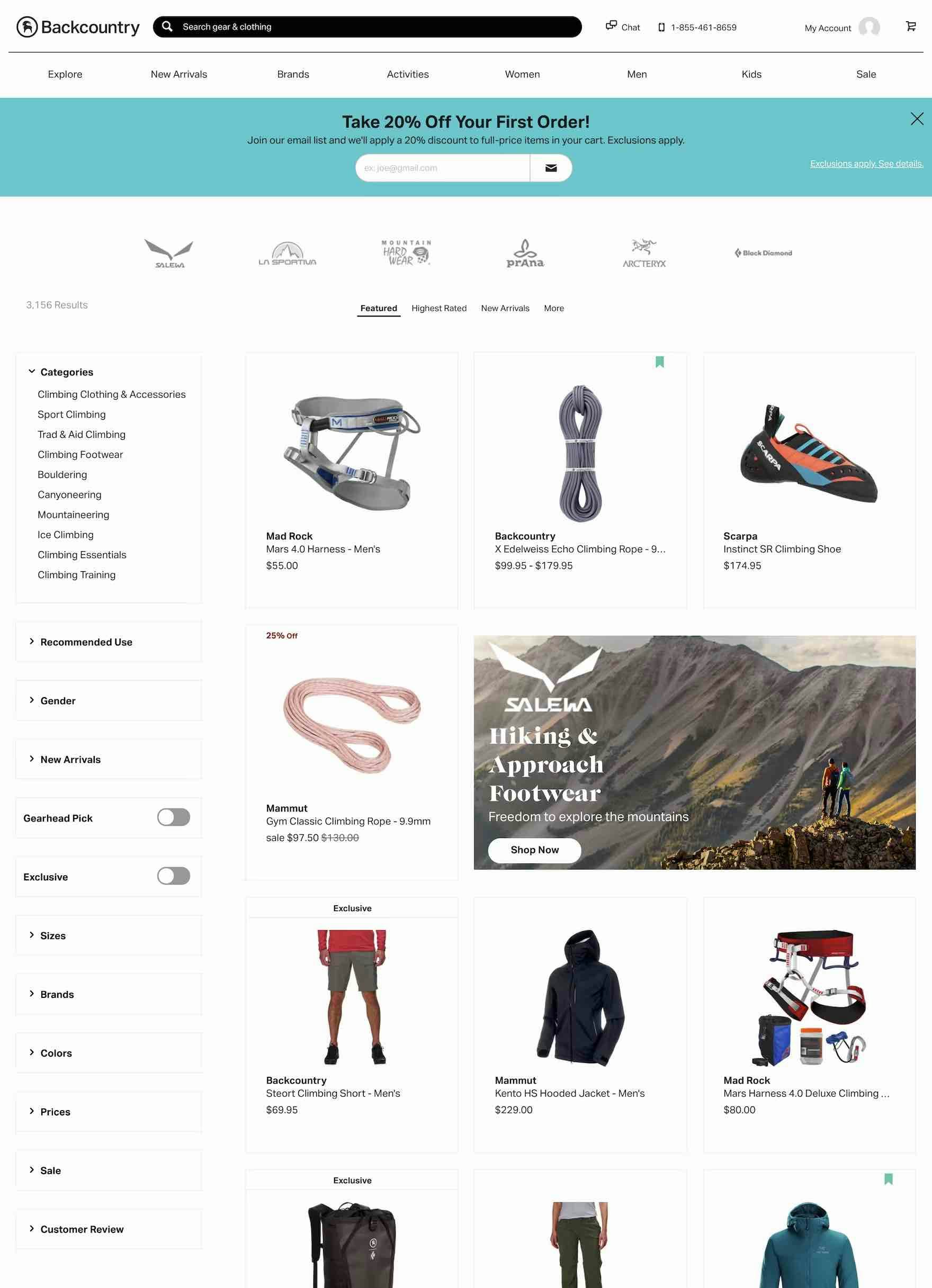 On the other hand, at a mass merchant site like Macy’s, there’s only need for a single “Climbing” filter in “Men: Outdoor & Camping”. Only 42 products are available, and while the products are diverse (e.g., shoes and clothing are both included), users interested in climbing products would likely prefer to scan one list of 42 products, rather than several lists that each contain few products.
