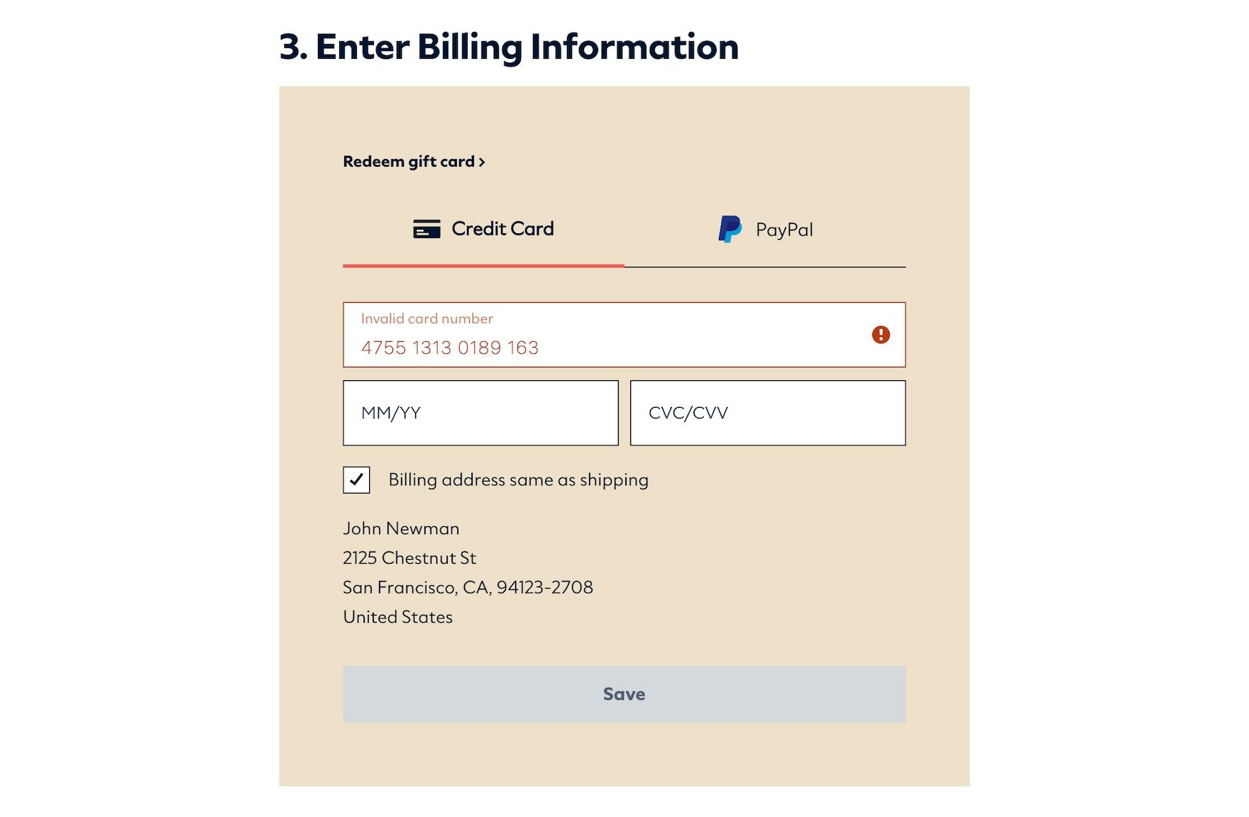 Our large-scale testing has shown that, inevitably, errors will occur as users progress through checkout.