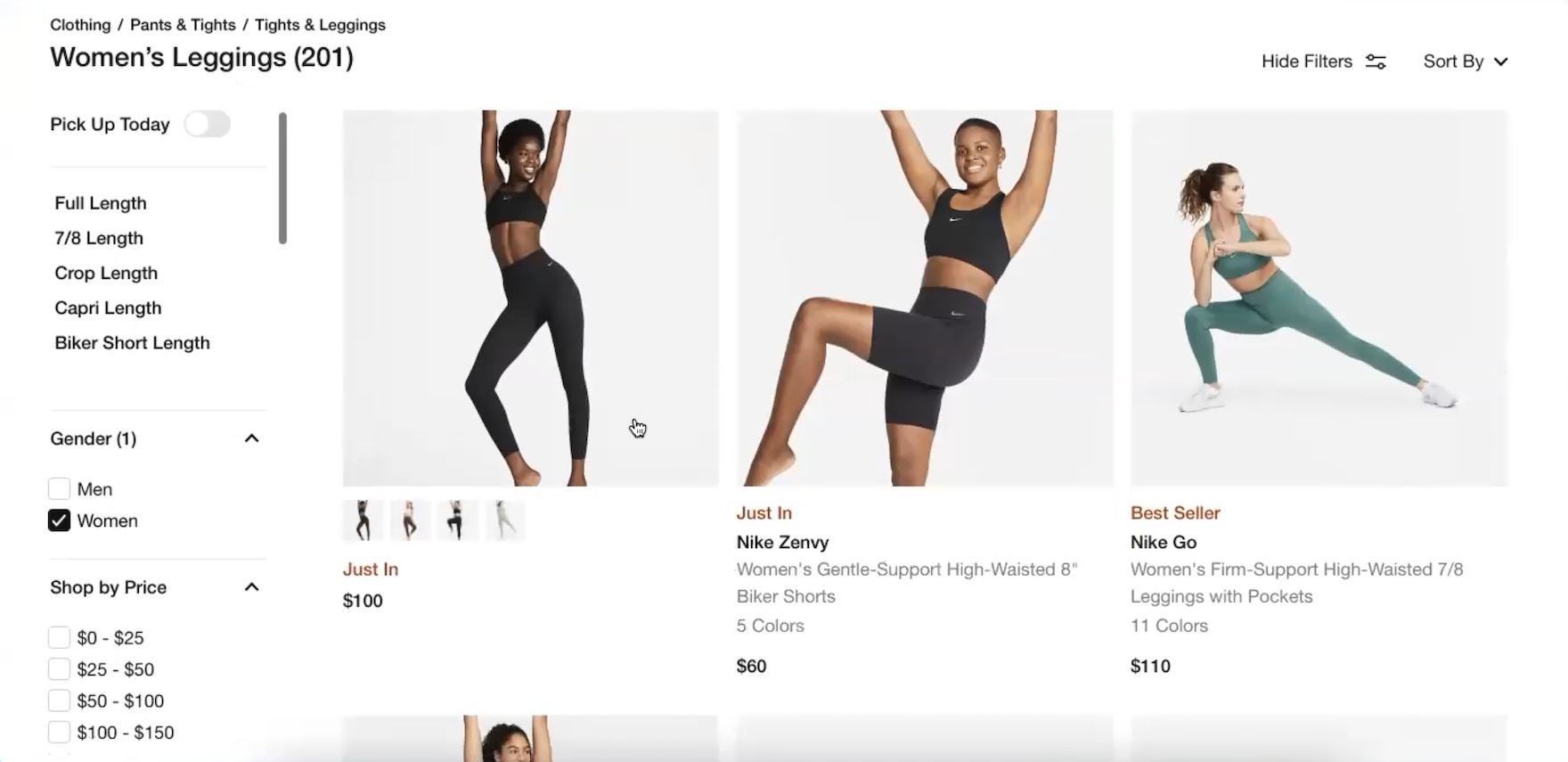 As observed during testing, despite the fact that “Size” is a critical product attribute for apparel, most participants didn’t filter by size, eager to get to the more exciting task of browsing and evaluating clothing items instead.