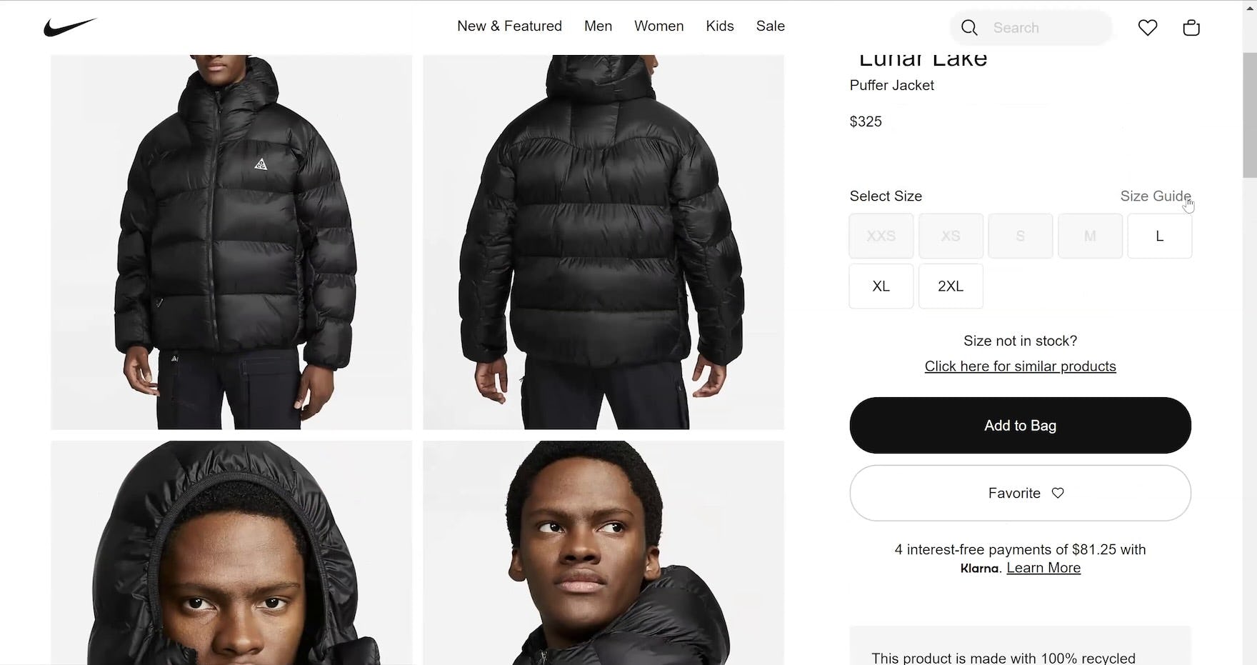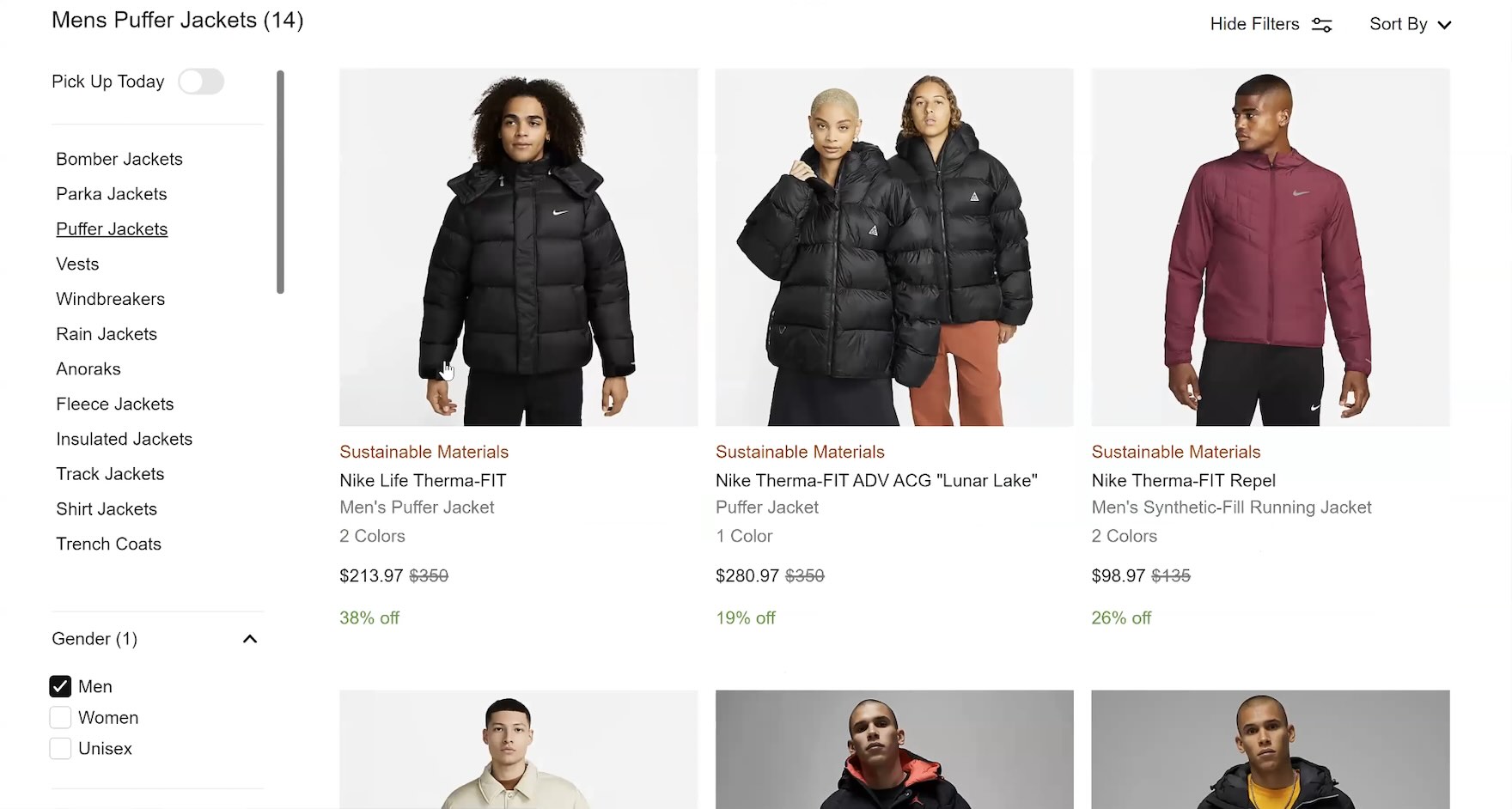 ”I’ll click the black color. Well, the size isn’t there, so I guess then I should go for some other jacket.” This participant at Nike didn’t interact with the “Size” filter, which was pushed beneath the fold and never fully came into view as he scrolled down the product listings to look at jackets (first image). Disappointed when the black jacket he had his heart set on was sold out in his size “M” (second image), he looked for a different jacket instead — and overlooked the “Size” filter yet again.