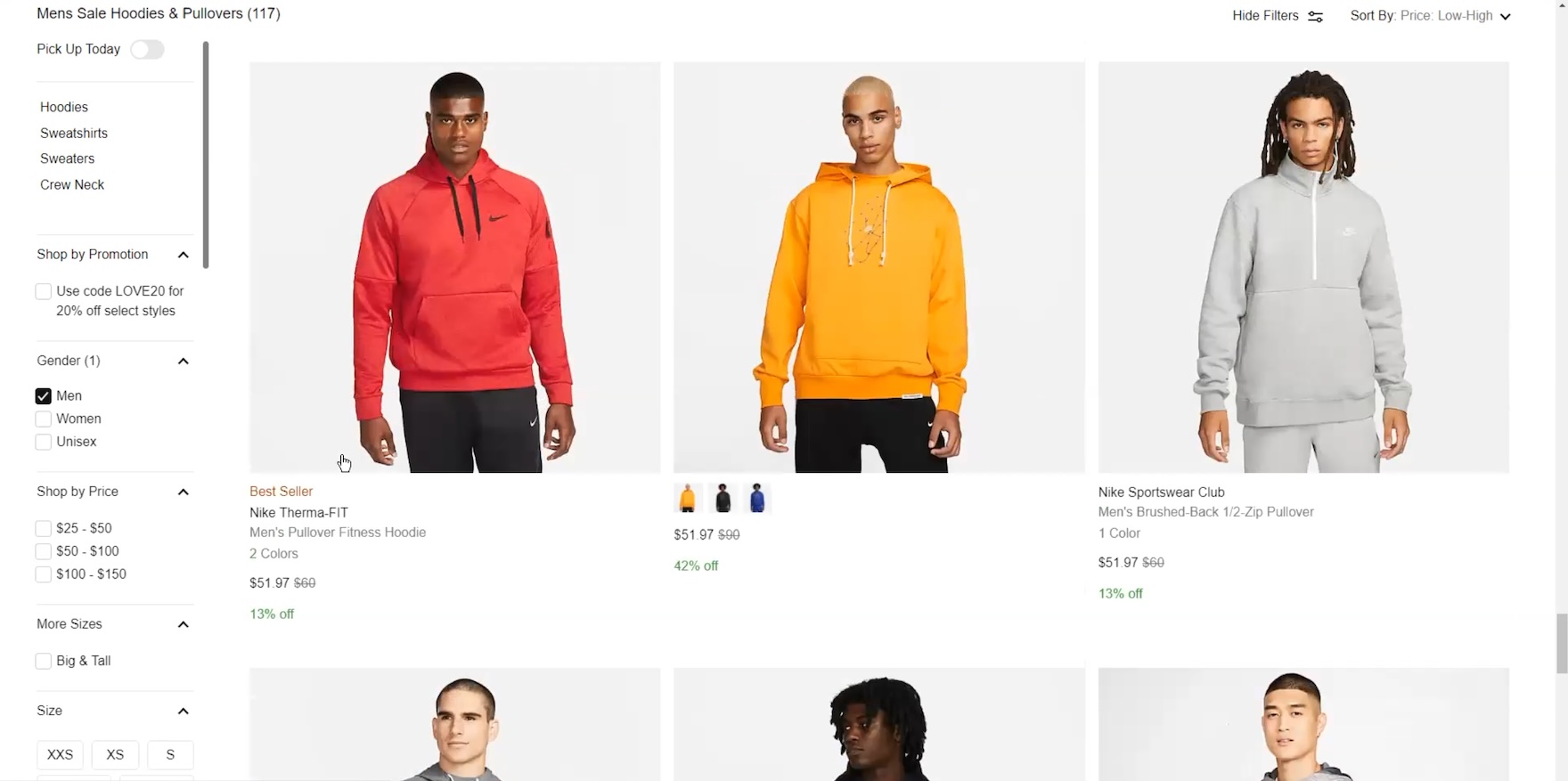 ”But this doesn’t seem to have my size though…Also this one seems to be sold out. So I’m just going to close that. I’m going to filter by ‘medium’. I think I should have done this previously.” Another participant at Nike didn’t initially interact with the “Size” filter, which, despite being open by default, never fully came into view as he scrolled through many pages of product listings (first image). Overlooking to filter by size caused him a headache as he wasted almost 4 minutes comparing 3 hoodies he liked — only to realize that 2 of them were sold out in his size “M” (second and third images).