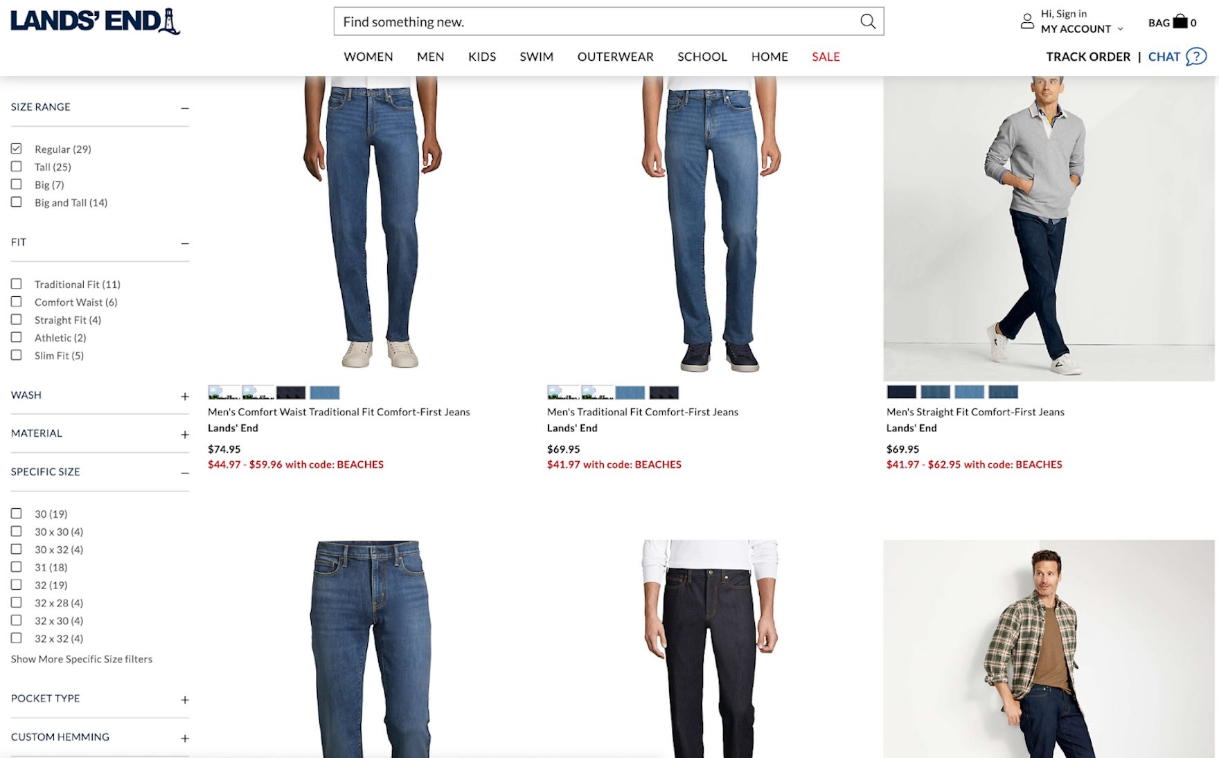 ”I would filter it by ‘Size’. I love that they have the ‘Length’ available right away, without having to go to a different step!” This other participant’s first action before browsing at Levi’s was also to select her size in the filters. Participants consistently gravitated to size filters that were both visible by default as well as clearly visible in the viewport.