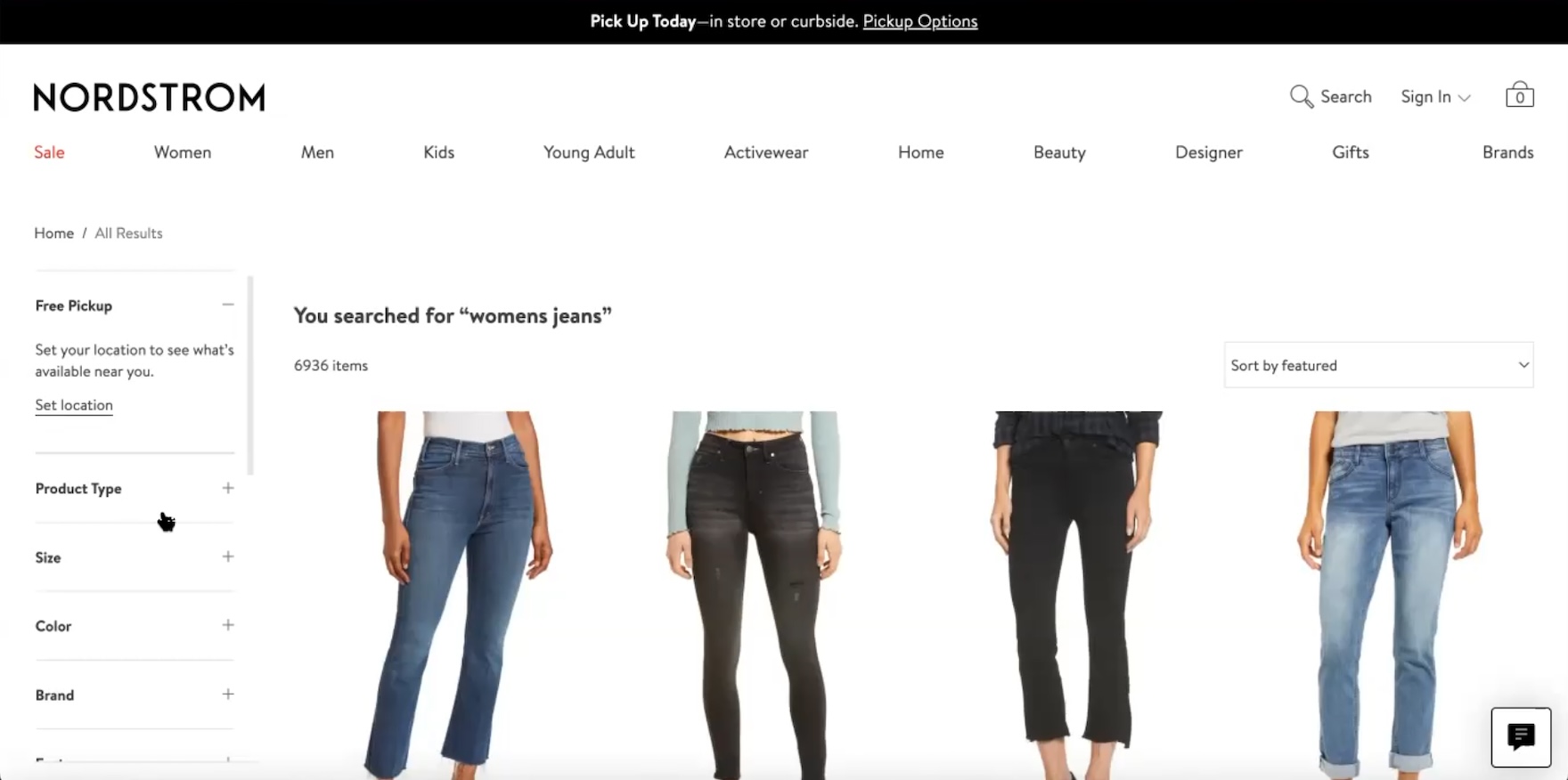 This participant shopping for jeans at Nordstrom never opened the “Size” filter in the left sidebar when in the product list — ultimately discovering, after spending 8 minutes browsing for jeans, that her preferred pair was sold out in her size.