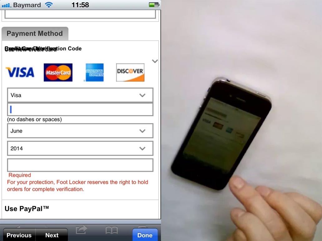 Instead of relying on native technology to display input placeholders, BestBuy has rolled its own buggy solution which in older versions of iOS caused the placeholder text to behave as user input, forcing the user to delete the entire placeholder example before they could enter their own input. A better solution would be to progressively enhance the user interface with placeholder text in browsers that support the feature natively.
