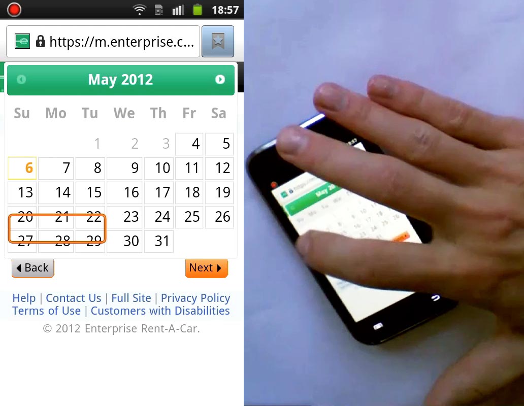 Here a layout bug is causing the focus outline of a field below the calendar widget to be displayed atop of it – causing the user to think a different date range had been selected.