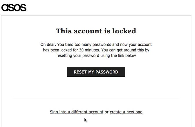 Additionally, some e-commerce sites have instead applied another security measure that we in testing found even more devastating: temporary account lockouts.