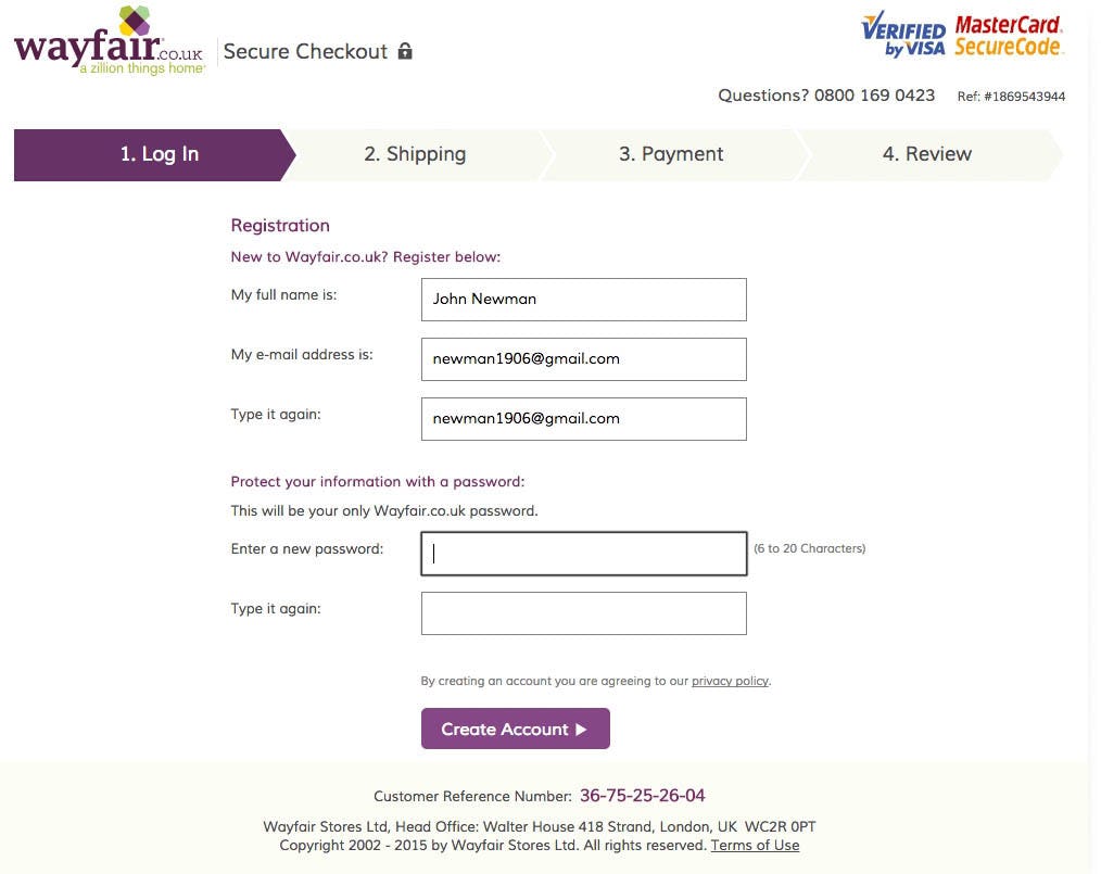 “I’d type one of my passwords. I have multiple. It depends on how important it is. At a site like Wayfair, it’s just a simple code, because it isn’t PayPal or my email account, or stuff like that.” Users often want to reuse a standard password for e-commerce sites they deem to be of “medium” importance, like this subject at Wayfair.