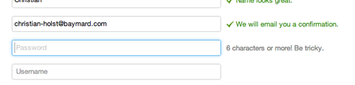 Twitter offers a good example. On Twitter’s sign up page the password rules are only shown when the password field receives focus: