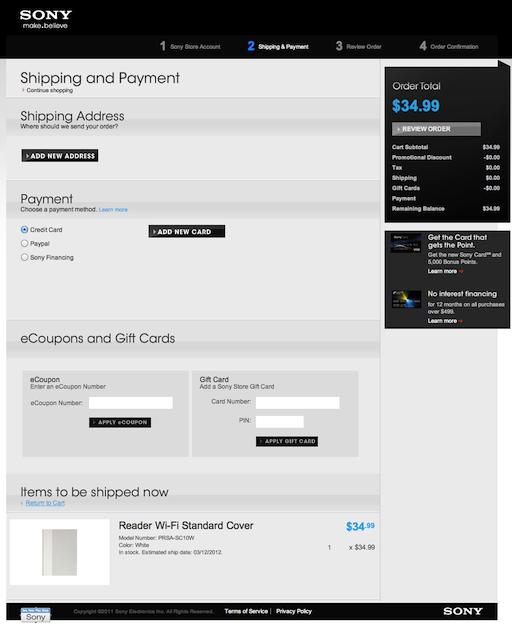 Step 2. of Sony’s checkout process seems simple on the surface but actually has multiple sub-steps.