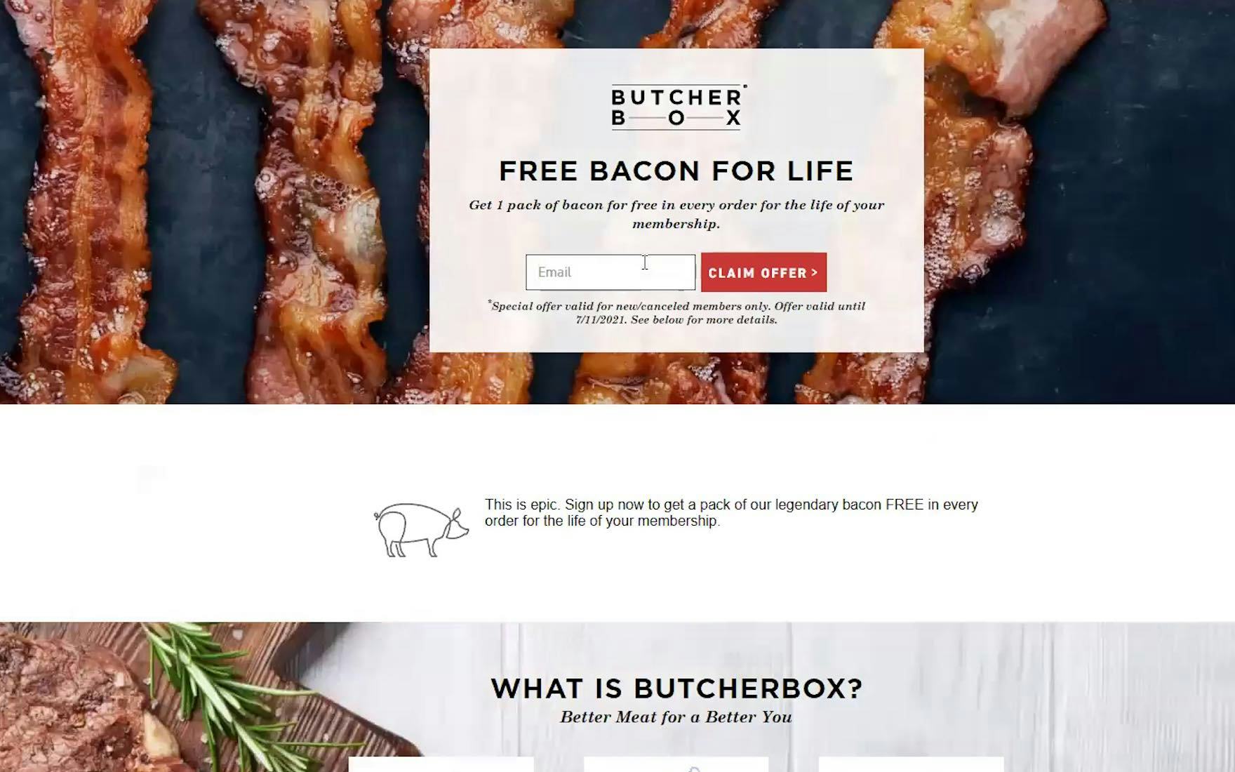 “Maybe if I click ‘Choose Your Plan’. ‘Free bacon for life’, it says, that’s weird…When I said ‘choose your box’, I did not expect to see ‘free bacon for life’…Did I click the wrong thing? It just says…That’s weird…And it wants my email address too, okay. So here’s where I would stop. I want information before I give them an email…I understand that’s how you would start an order, but I want to maybe assemble my order first, before, and see what that process is before I gave them my email.” At Butcherbox, another user clicked the “Choose Your Plan” CTA from the “Sourcing” page and was so thrown by the subsequent email form field that he abandoned. Note that plan details were below, but this user never scrolled to see them.