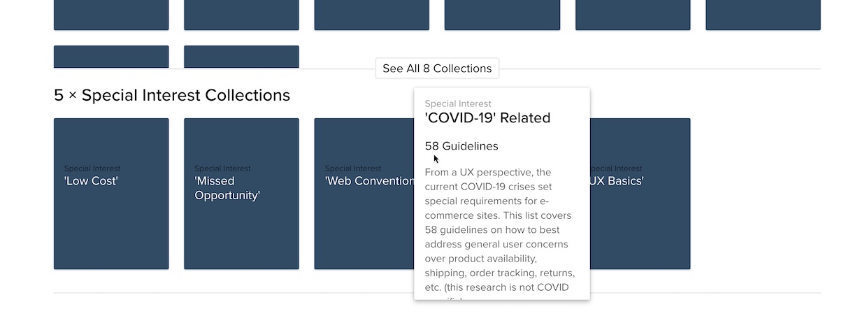 Baymard Premium has the full list of 58 UX guidelines that are especially important to consider during the COVID-19 crisis.