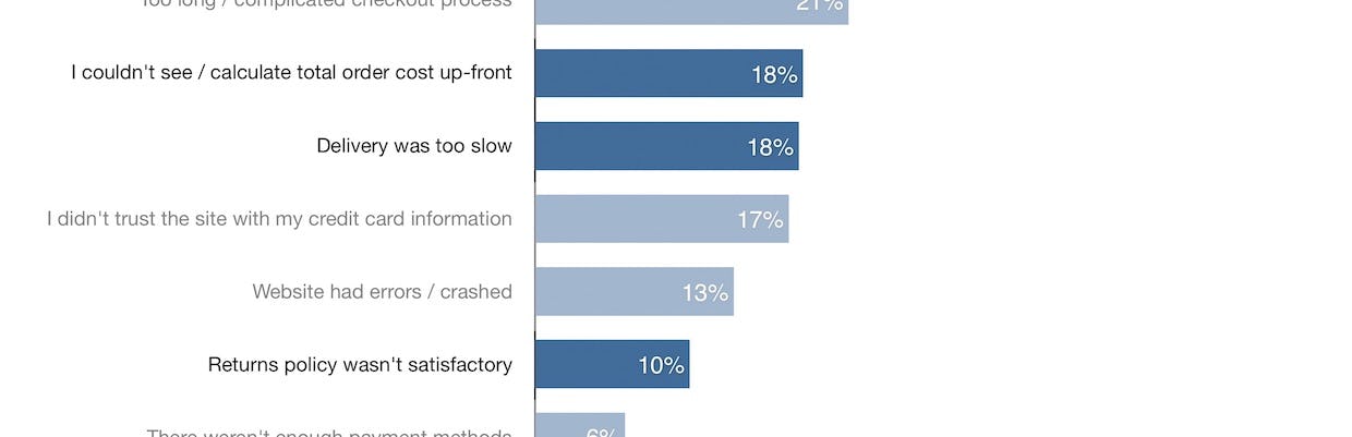 Many users are highly concerned about a site’s shipping costs and return policies before buying online — our quantitative study of reasons for checkout abandonments shows that return policy and shipping–related issues are a direct cause for abandonments.