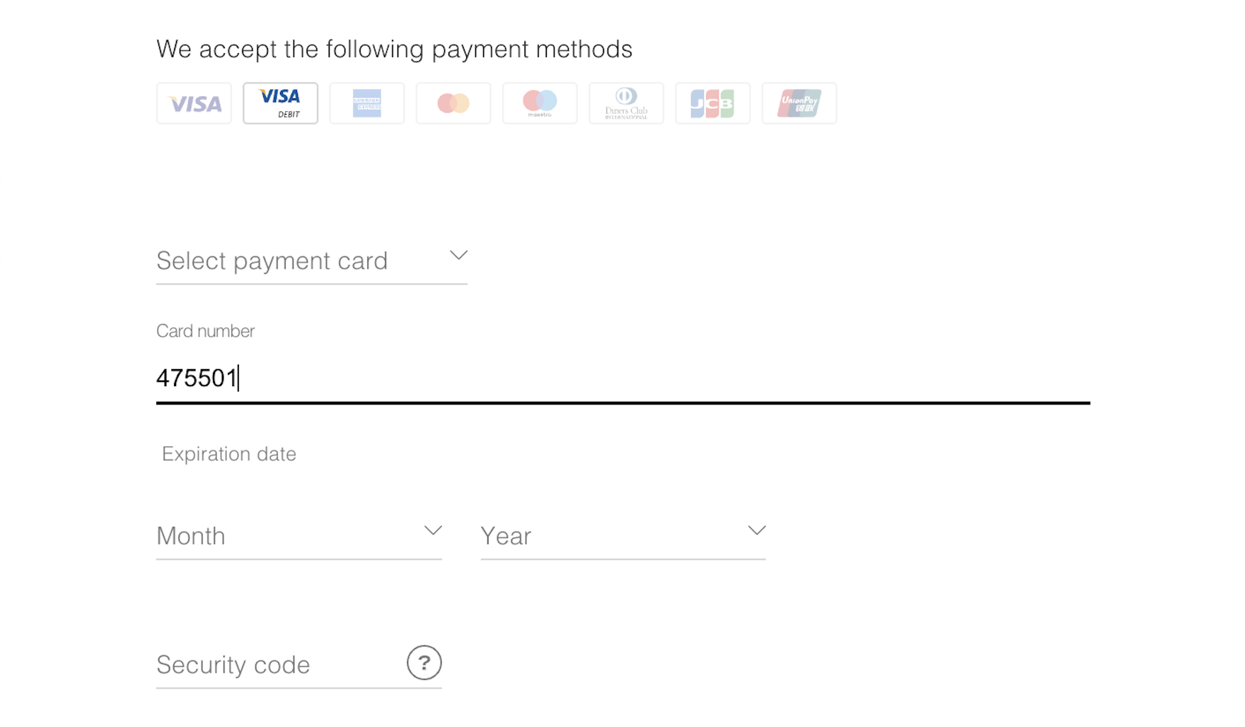 Additionally, do not limit the allowable characters in the “Card Number” input field, because it always disallows spacing and can also have major consequences for a smaller subgroup of users, since not all card numbers are 16 digits long.
