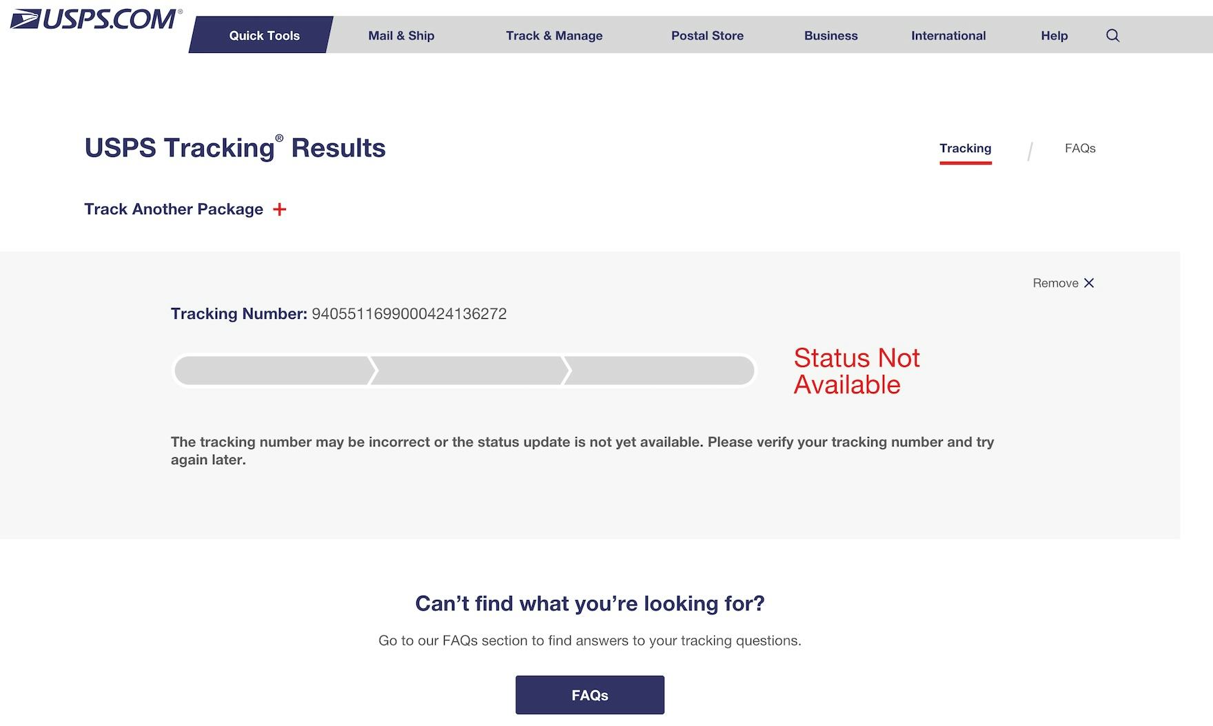 At many third-party courier sites (like USPS here), users looking for tracking info will instead often see a message like “Status not available” for several hours until the tracking info becomes available on the courier’s tracking page.