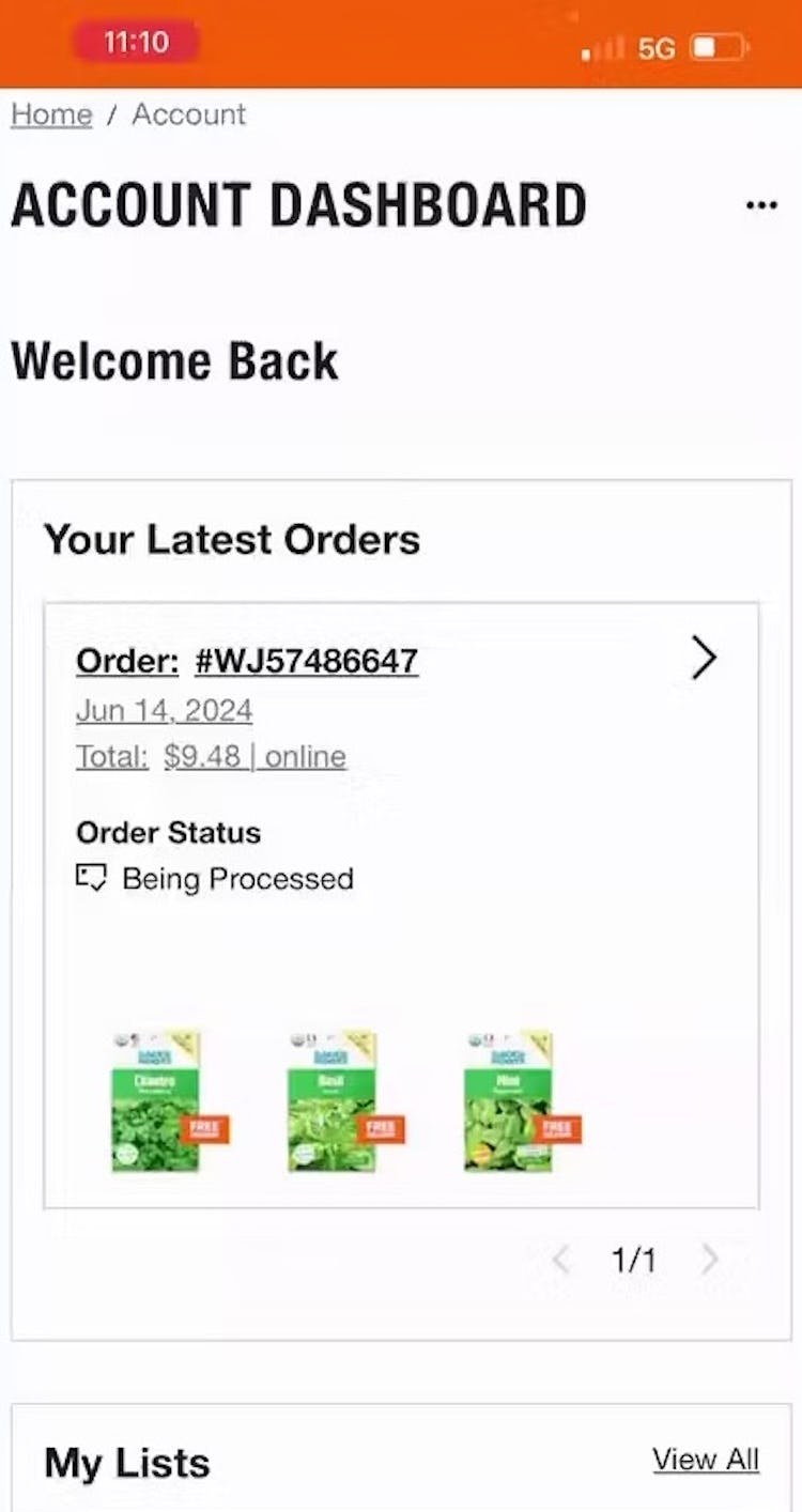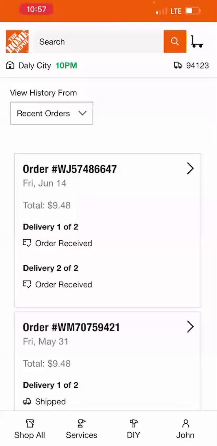 “So I will get an email if the cancellation is approved because it depends on, I guess, how far along it is in the processing and getting ready to ship”. At Home Depot, a participant attempted to cancel an order, and received a confirmation message stating that the attempt had been registered (first image). Returning to her order history, she was surprised to see that the order she was attempting to cancel was still listed as “Received”, leading her to speculate that there was a lag between her request and when that information (whether or not the cancel request was successful) may show up on the site (second image). She returned to the order details page 11 minutes later, only to find that the order status had changed from “Received” to “Being Processed” (third image). She then left the site, uncertain as to the status of her cancellation request.