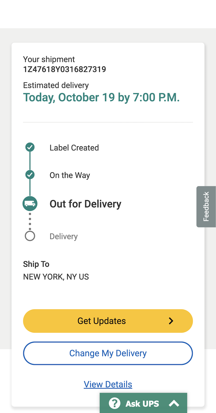 It can be jarring for users to go from a retailer’s site (Apple in this case) to a 3rd-party shipper’s site — information may be missing or incoherent, and the user experience often suffers as the retailer has no control over how the 3rd-party shipper presents information to users.