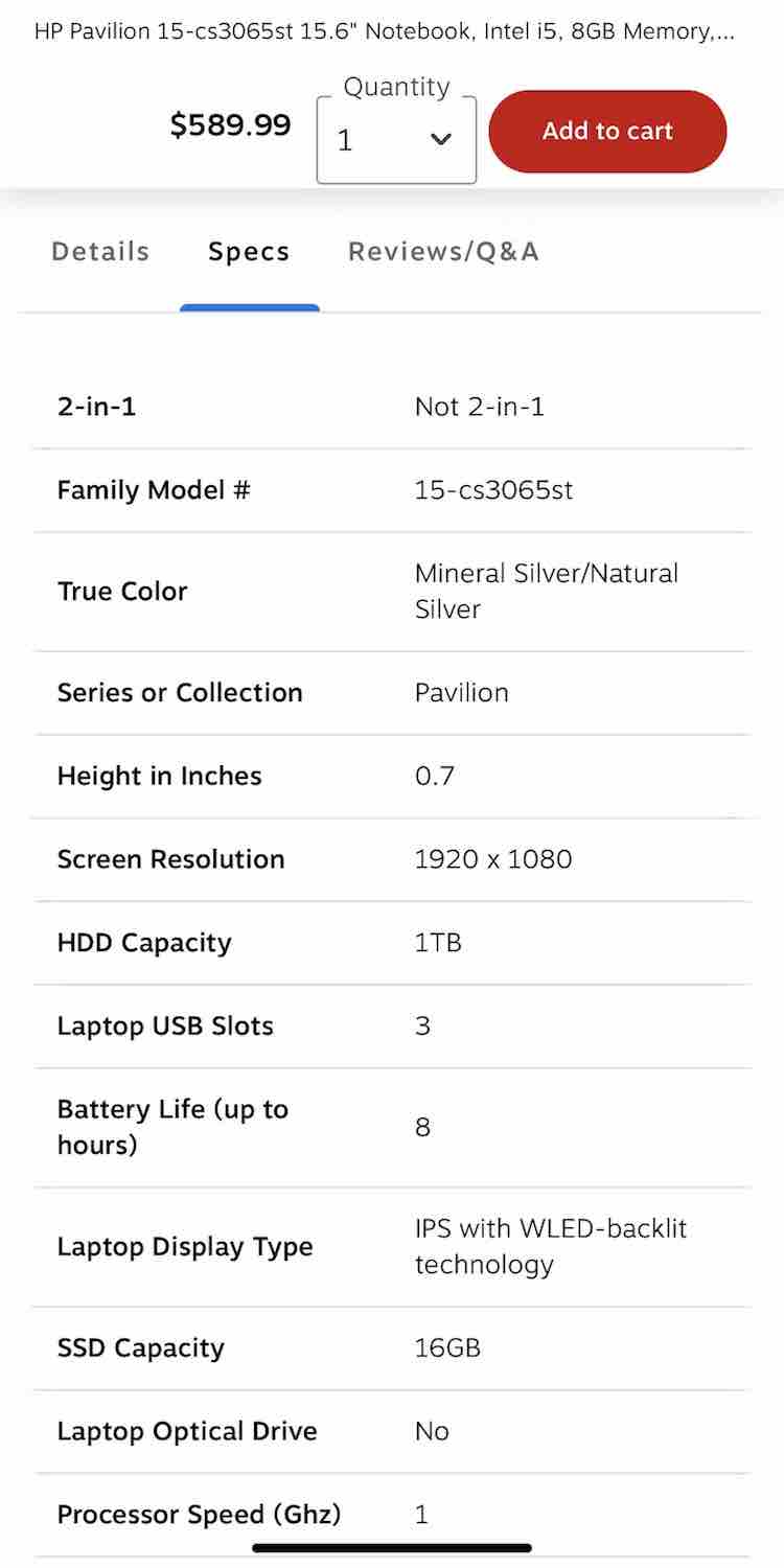 During testing, even relatively short spec sheets became unscannable when they were presented as a “wall of specs.”