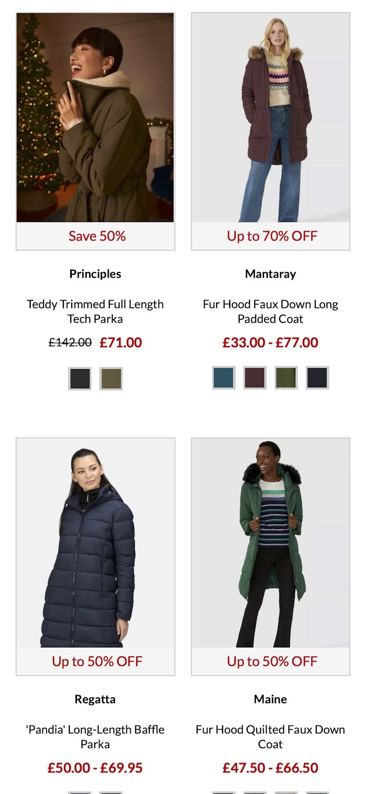 - Combine variations into a single list item, with the variations often indicated using swatches below the thumbnails.