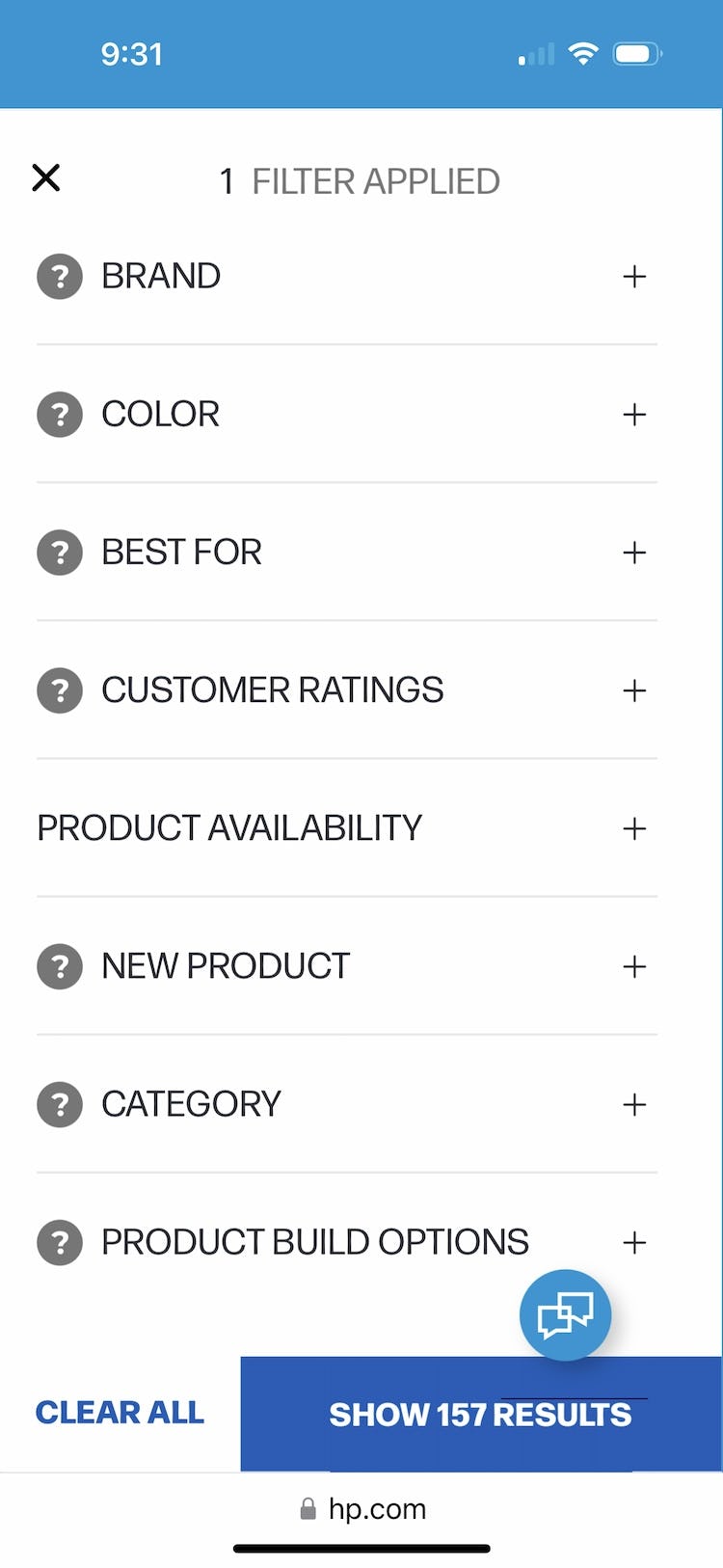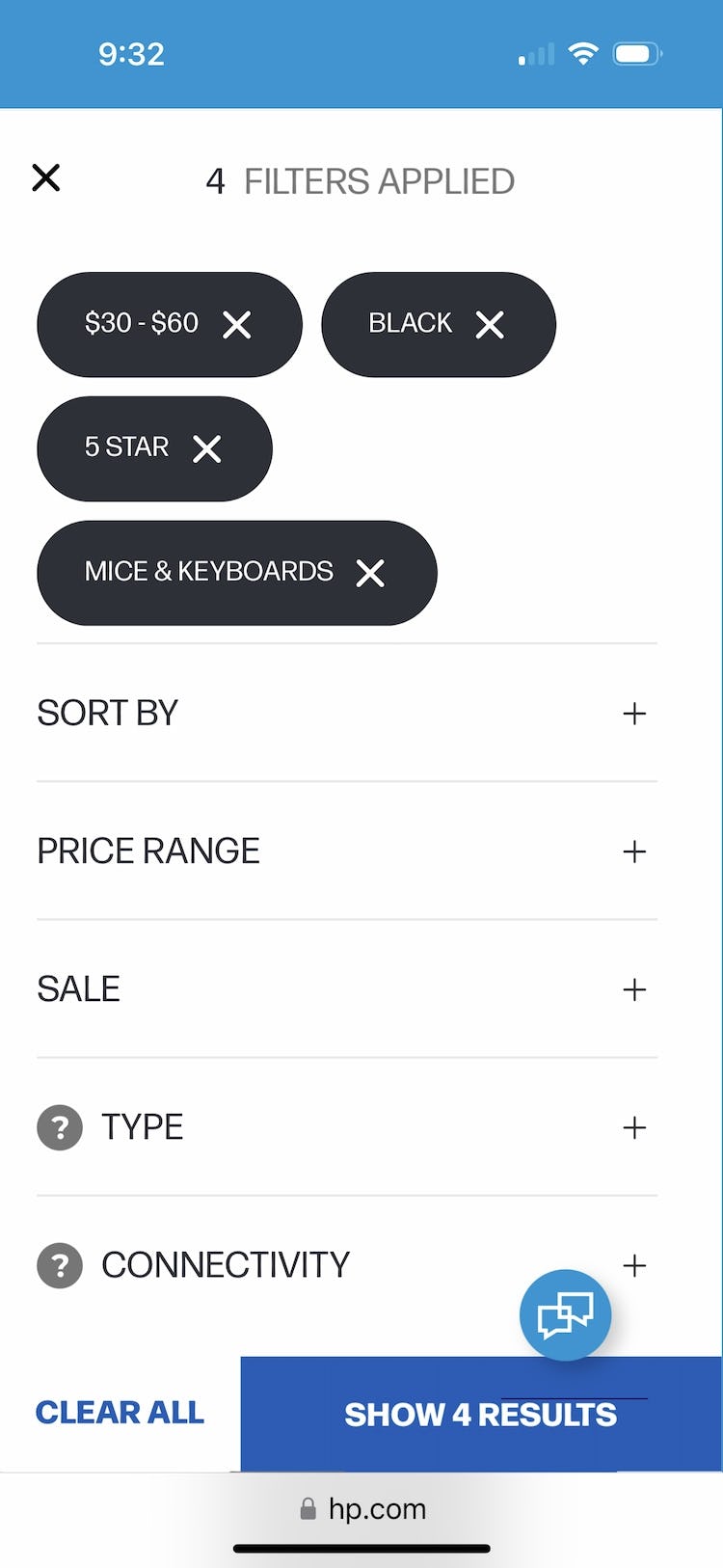 Users searching for “Mice & Keyboards” on HP can quickly filter the product list of 157 items using essential filters such as price, user ratings, color, along with numerous other category specific filters. Users can thus skip any lengthy scrolling tasks and narrow the list quickly to just relevant items.