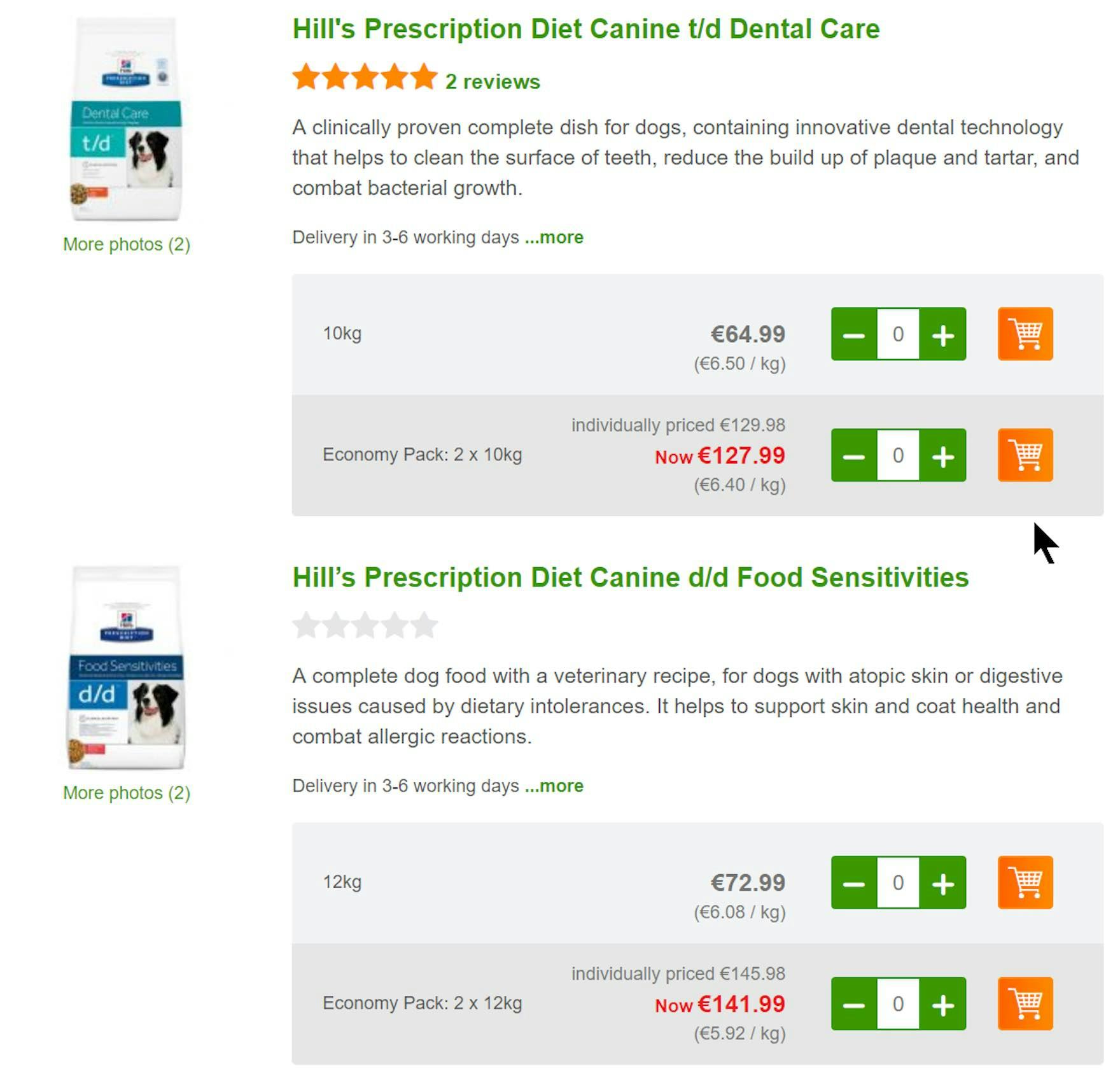 By providing unit costs, Zooplus makes it easier for users to select between product types and pack sizes. Users don’t have to calculate unit prices so the comparison process is easier and quicker.