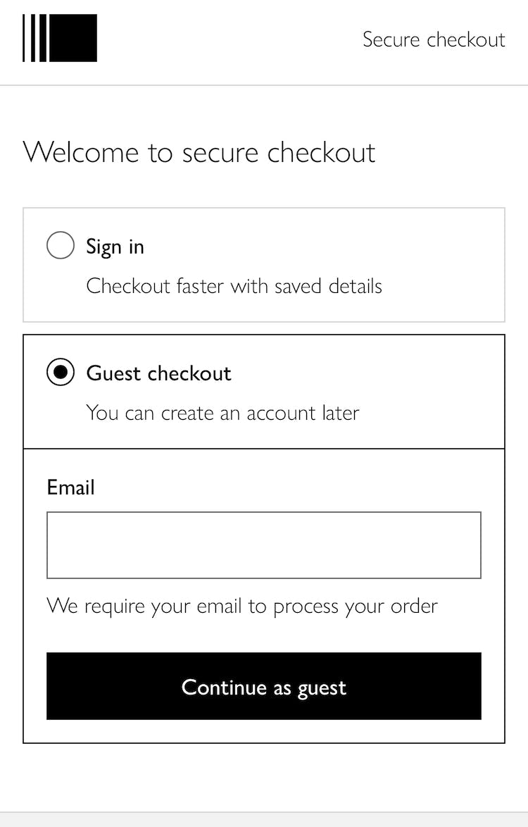In practice, users who opt to complete checkout as a guest risk stalling their progress when required midcheckout to reconsider whether they want to create an account.