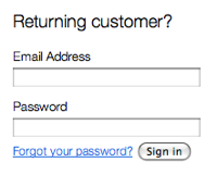 When conducting our checkout usability research I noted that quite a few e-commerce sites use “Returning customer?” as the header for their account login form, even though they offered a “guest checkout” option.