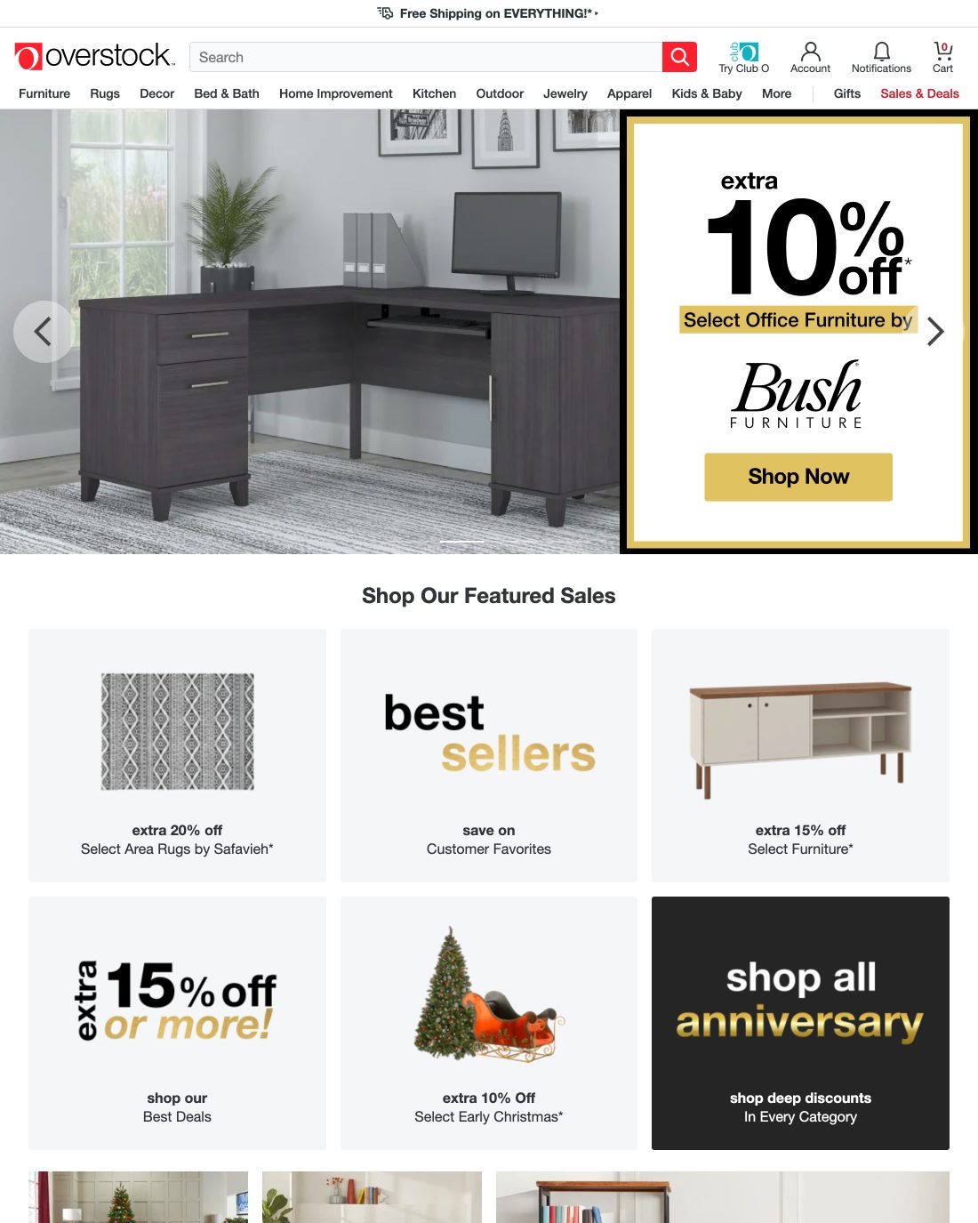 At Overstock, less than 20% of product categories are visually represented on the homepage, preventing users developing a strong understanding of the diversity of products the site has to offer.