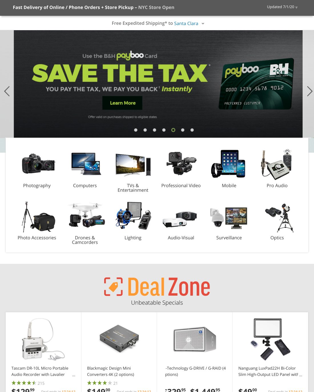B&H Photo makes good use of image thumbnails to represent over 90% of product types on the homepage. This helps users select a well-defined scope.