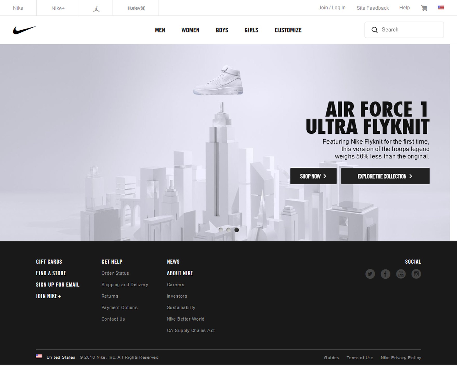 The lack of featured categories on the homepage makes it difficult for users to find the appropriate scope at Nike.