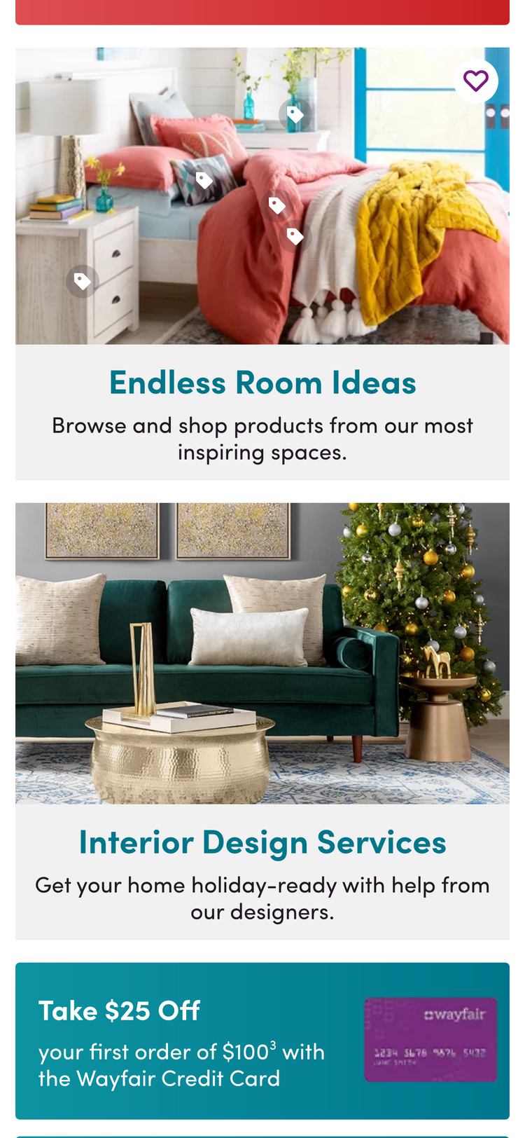 The beautiful photography and simple design used at Wayfair goes a long way toward setting a positive tone for the shopping session, while also showcasing specific products.