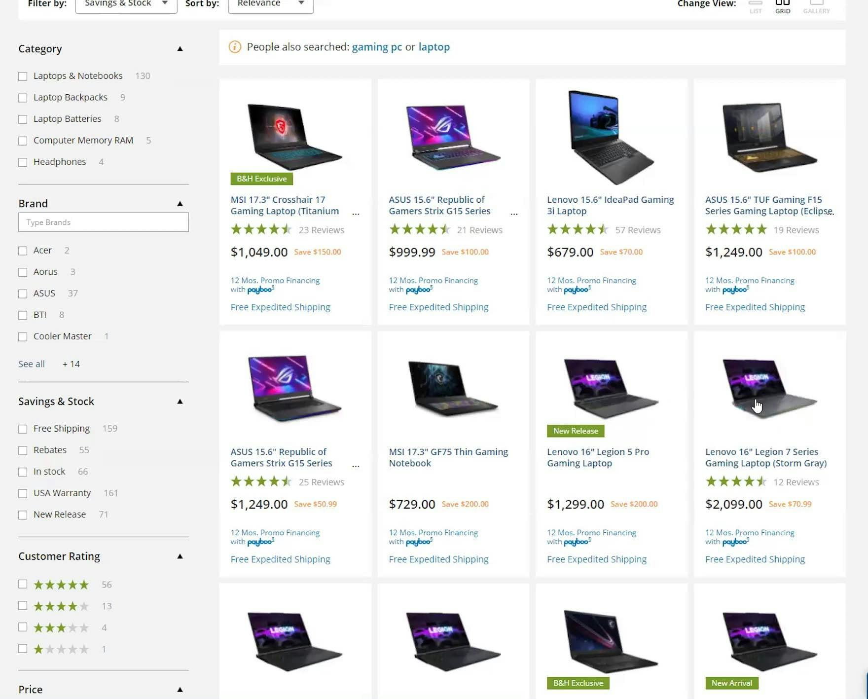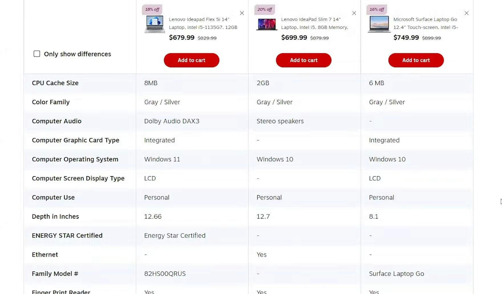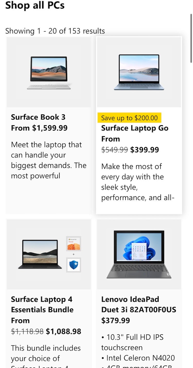 On the other hand, a user considering a laptop will conduct a cursory visual inspection of the laptop thumbnail in the product list before diving into detailed specs (e.g., screen size, operating system, weight, use cases, etc.).