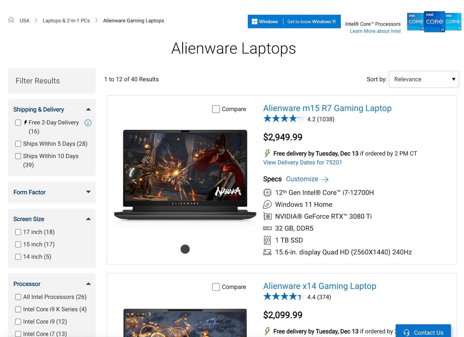 With this level of spec detail in Dell’s list items — with ample space provided by the “List View” layout — users will be able to assess many of the most important product attributes before visiting product pages.