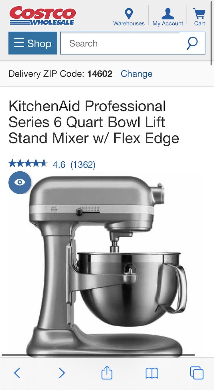 At Costco, an “Exact Search” for the model number of a mixer is unsuccessful (first image), even though the product is sold at the site and findable via browsing (second image). Note that the model number data is even shown on the product details page (third image), so it’s not that Costco doesn’t have the data — it’s rather that the data is not utilized by the search engine. This is highly problematic for all those users who copy-paste product titles and model numbers from external sites (e.g., review or manufacturer sites).