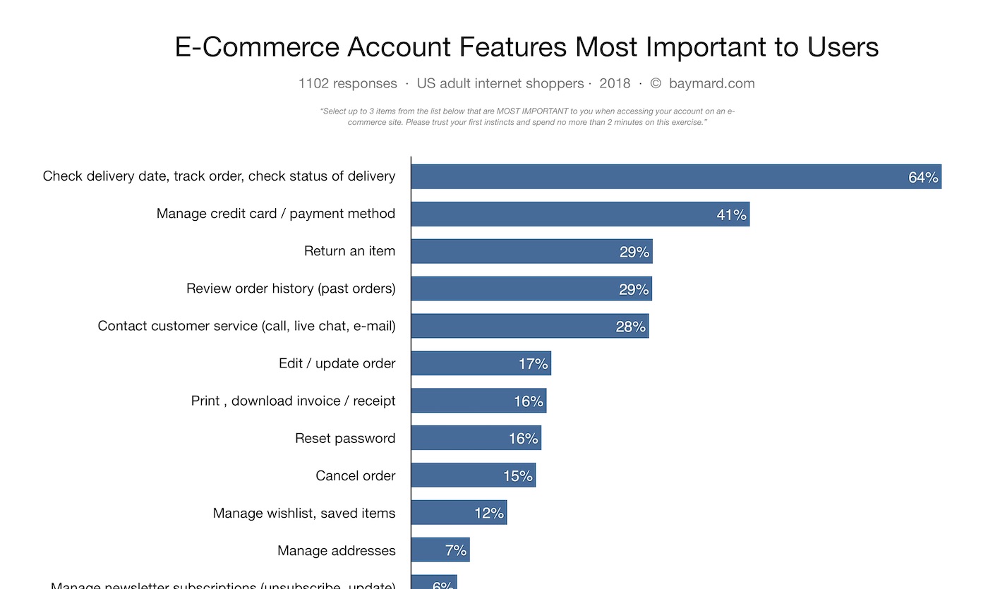 Baymard’s quantitative study on Accounts & Self-Service reveals that: