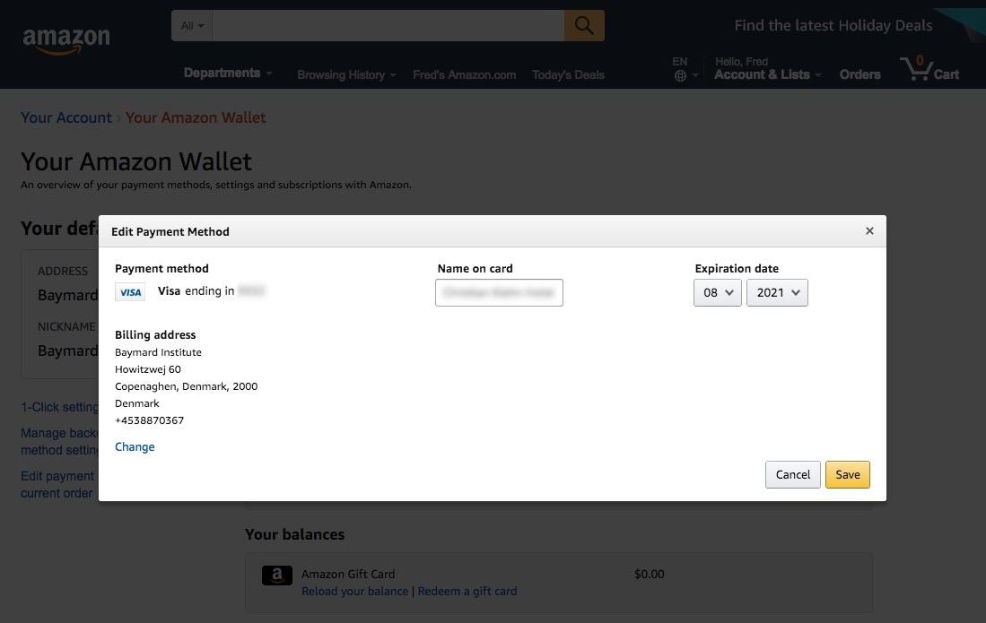 - What happens when a user tries to change stored credit card information