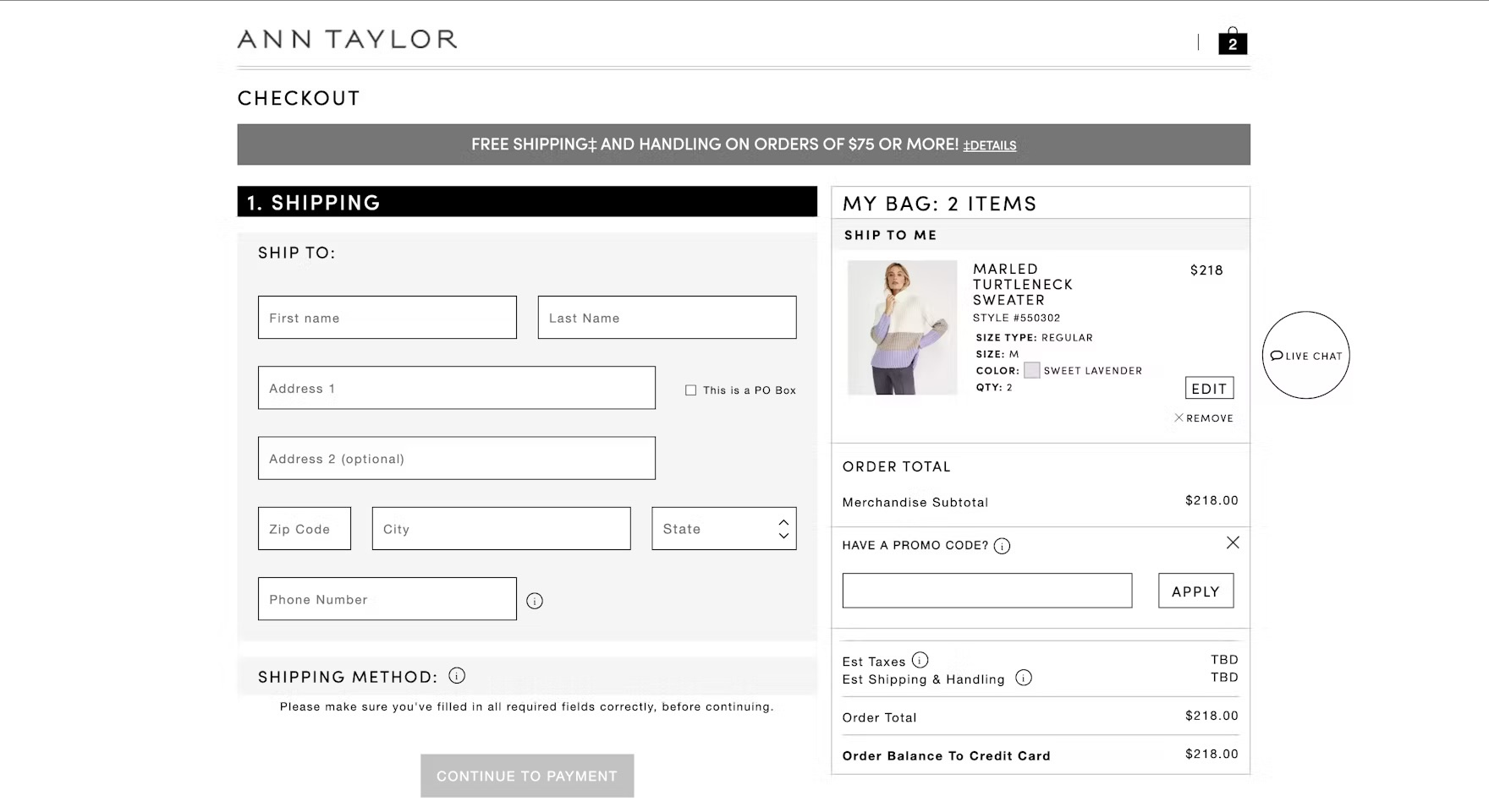 At Ann Taylor, the contrast between the form field borders and the background is sufficient (19.2:1).