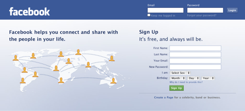You can sign up for a free Facebook account right there on the home page. Facebook could however make the sign up even faster by turning the “select sex” drop-down into two radio buttons (one click less and users can see the options immediately)