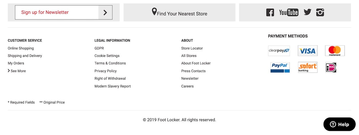 The footer links at Foot Locker are clearly visually separated. The user can now see how the information is grouped and which items are separate from each other.