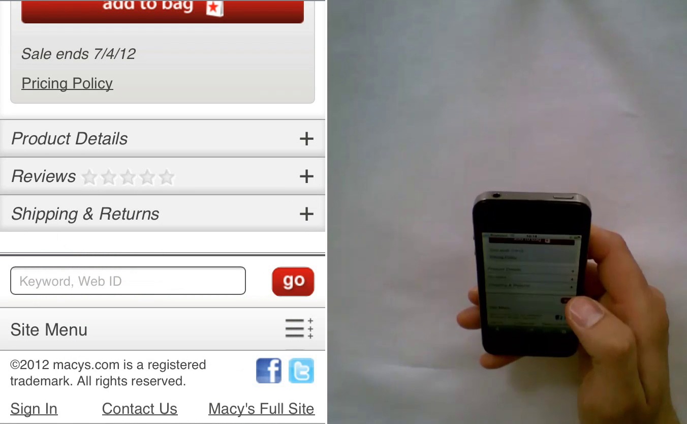 It’s important to keep in mind that regardless of whether the user is on desktop or mobile, the footer is still associated by a subgroup of users as “the place to go” to find information on the site’s return policy or shipping information. While this information also needs to be directly within the product page content, shipping and return policy information should always also be accessible from the footer. Within the footer it’s not enough to just have a generic link, e.g. to “Help”. To aid scannability and findability the site would still need separate stand-alone links for “Return Policy” and “Shipping Info”.