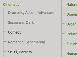 Here, when you first see the list you have no clue as to which words can be clicked and which are just normal text. In fact, you may believe all of them can be clicked, although subconsciously, following normal design principles online most users would probably expect the washed-out text not to be links – to be “disabled”.