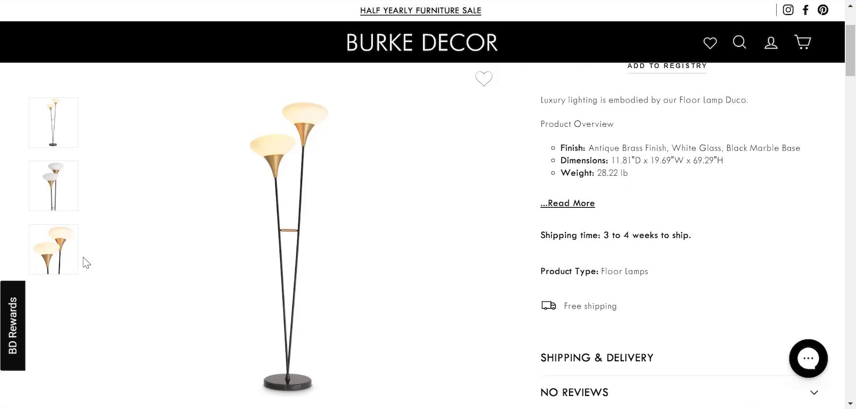 “You’re showing me three generic photos for a $2,000 lamp. I’d expect a little more effort, you know? This is terrible. I’d expect at least a photo or two in a room. Show you what it would look like.” This participant on a product page at Burke Decor was frustrated to find only 3 images of the lamp he was considering, and needed more to feel comfortable spending $2,000 for a lamp sight unseen.