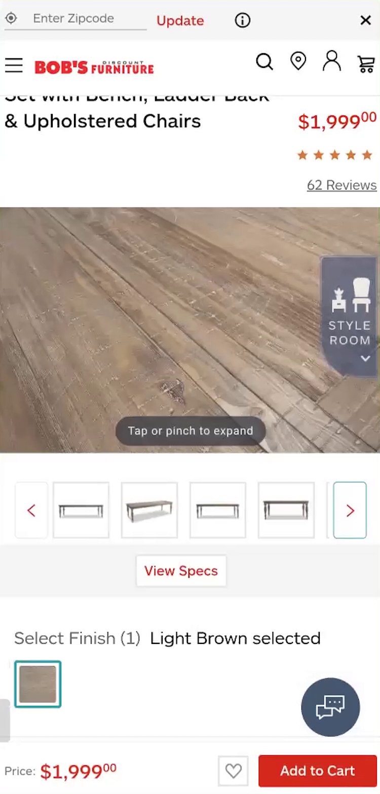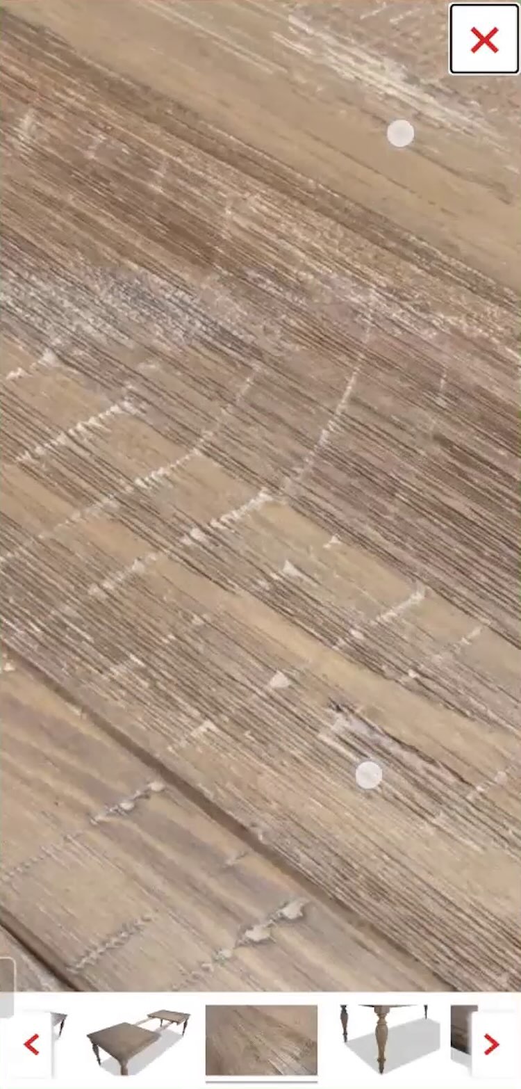 “I like the fact that they give you a close-up…[zooms in on close-up image]…I like that you can get a super close-up as opposed to a predetermined close-up. I like that I can control that. I can get a really good sense of what this tabletop is like.” This participant using an Android device at Bob’s Discount Furniture appreciated the “Feature Callout” image showing a close-up of the tabletop (first image), and was even more pleased when he saw how much further he was able to zoom in on it (second image).