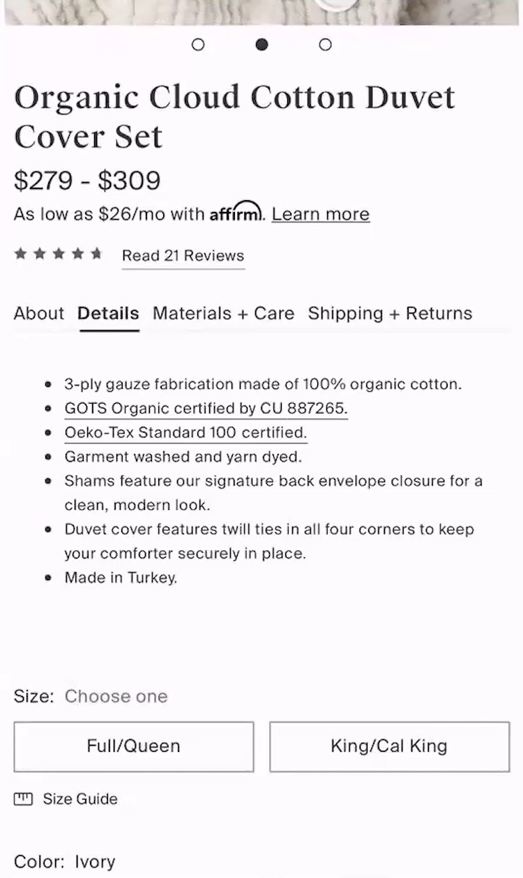 “It includes one fitted sheet and one pillowcase set. So does it mean it has two pillowcases? Does it only have one — like, is it two pillowcases with the pillowcase set?” This participant at Parachute checked what items were included in the linen sheet set she was considering in the “About” section of the product description, but it wasn’t clear whether the ”Pillowcase Set” had 1 or 2 pillowcases. For sets and bundles, it’s critical that the product description make it clear exactly which items are included.