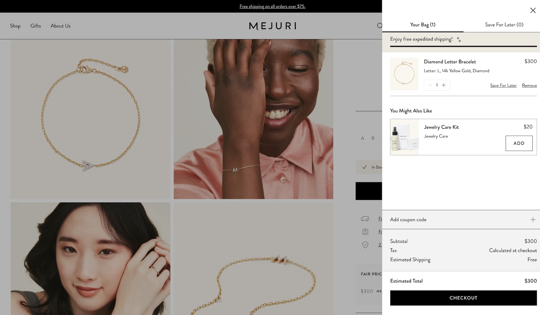 At Mejuri, no mention of gifting is offered in the cart, which may cause users intending to order a gift to hesitate to move forward.