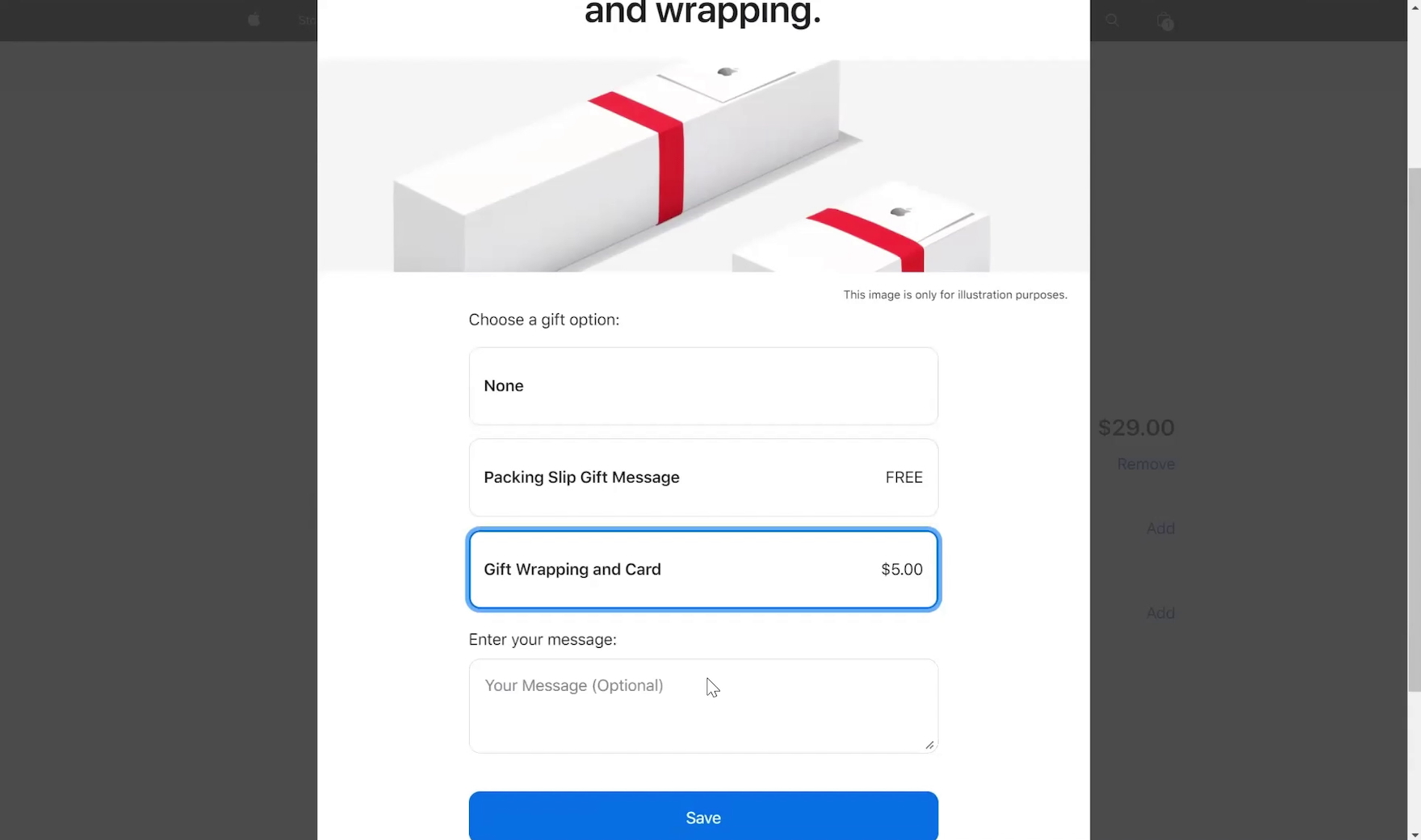 Therefore, it’s important to inform users early of gift-wrap availability by highlighting it as an option on the product page.
