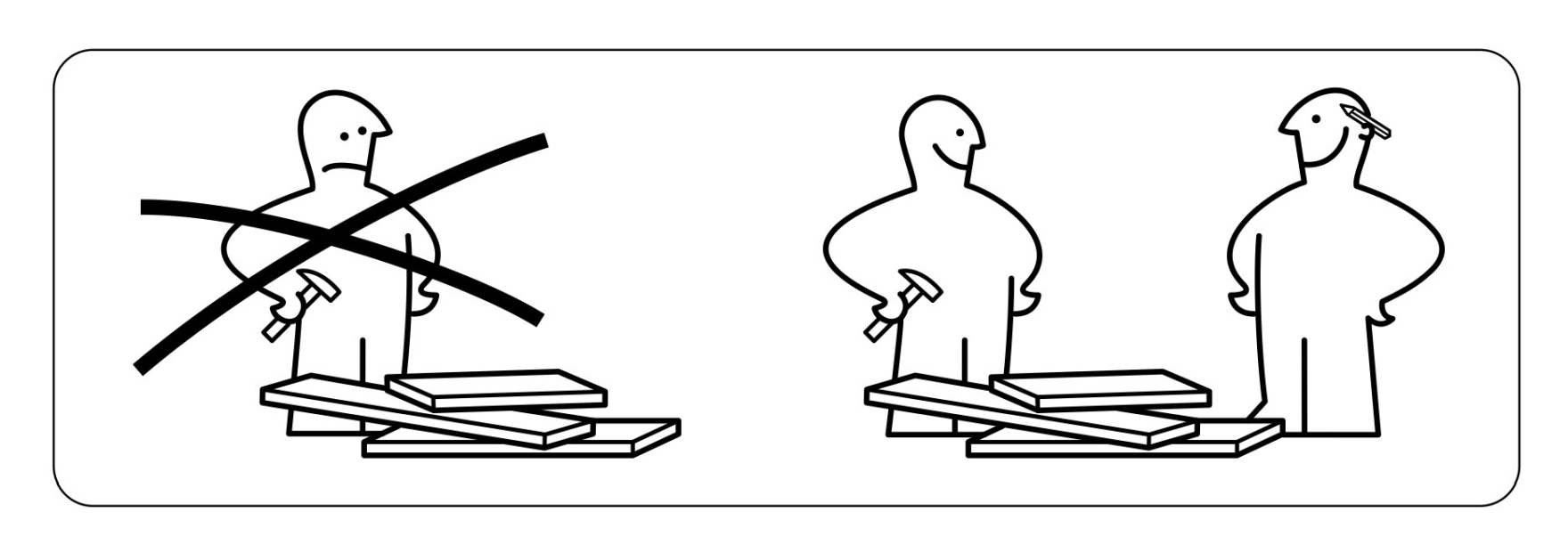 This simple diagram, originally used by IKEA to transcend language barriers in their instruction manuals, includes an alt text tag (alt="Picture of recommending to work with more than one person") to ensure that the meaning of the image is still communicated to users with visual impairments.