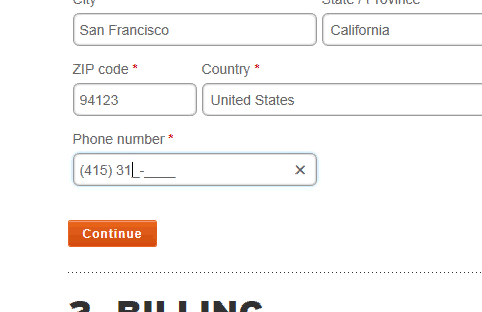 For this reason, it’s important that input masks provide empty placeholder formatting as users enter the field to clarify the expected format of fields, and to clarify that the user is not supposed to type formatting themselves. During testing, all subjects immediately picked up that, when putting focus on a phone number field with an input mask, the use of underscores and parentheses in the placeholder text clarified that they only had to type the phone number digits, whereas if the field had no placeholder formatting it was more difficult for users to know whether or not they had to type formatting characters.