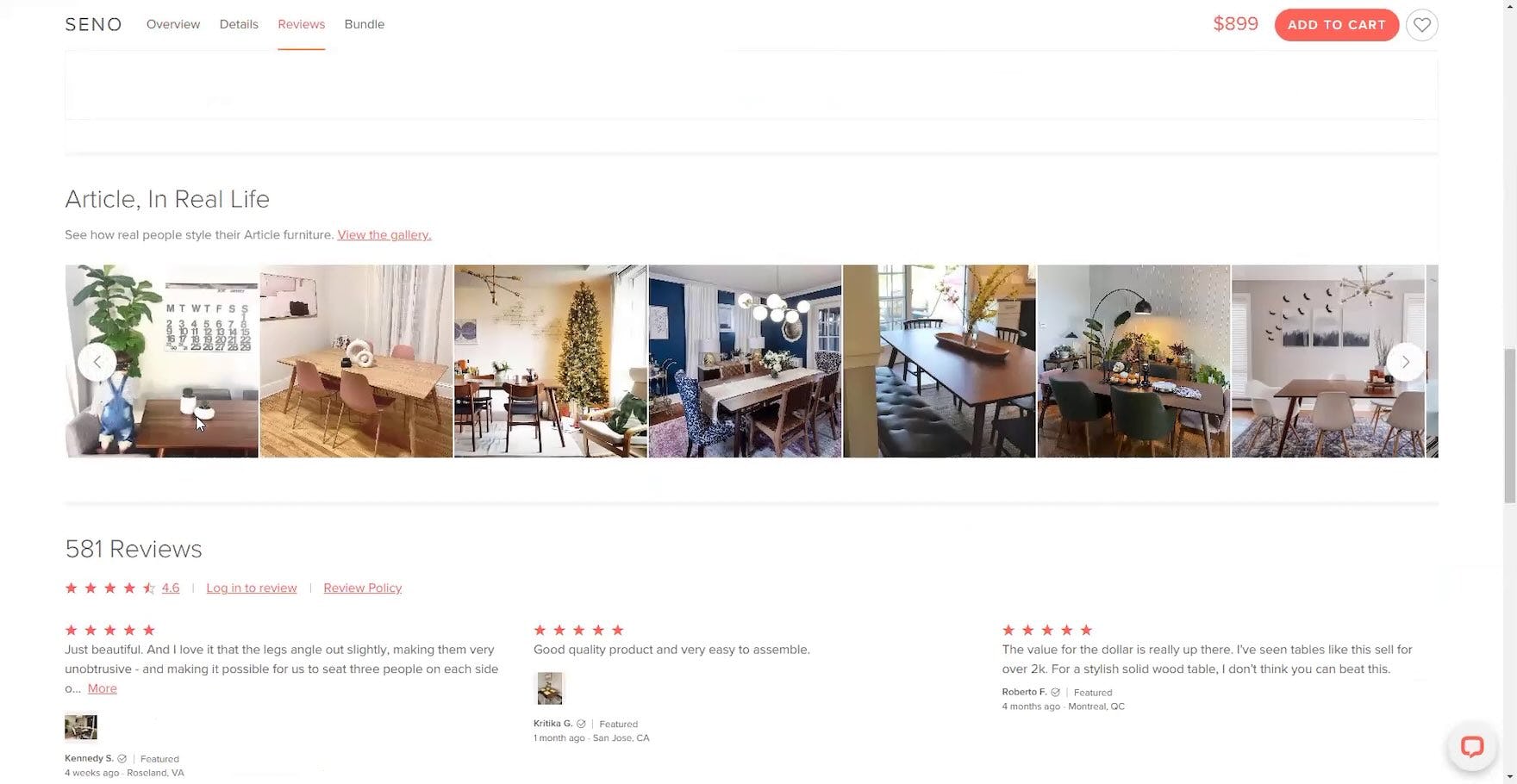 “I’m clicking on the pictures to see what it could look like in real life, based on some of the other customers that picked up this same dining room table.” Similarly, this participant at Article finalized her decision to purchase when she saw social media images of the table styled by other users.