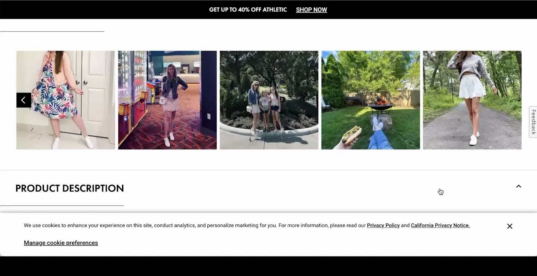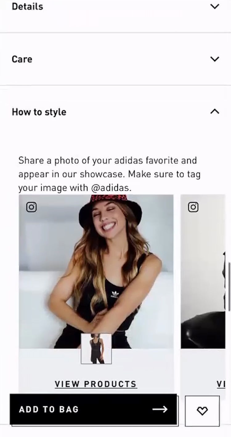 “ I like when I can see examples of how people are wearing it. That just makes me feel a little more confident in my purchase.” This same participant repeated her appreciation of social media galleries when she encountered one again on a product page at Adidas.
